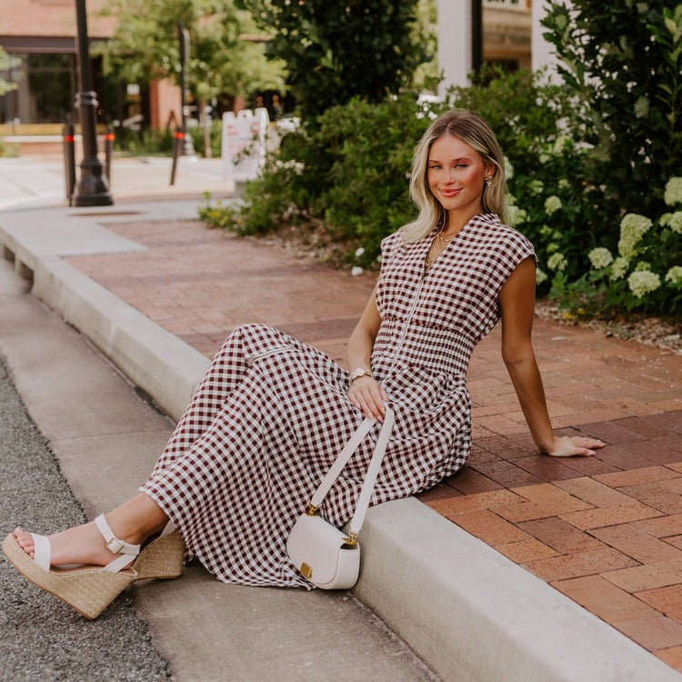 Zoey Vacation Crew Neck Lantern Sleeve Floral Printed Dress