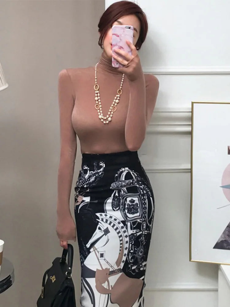 Camiseta de moda de otoño 2025 para mujer, camisetas lisas de manga larga con cuello alto, parte inferior ajustada para mujer, camiseta sexy transparente, ropa