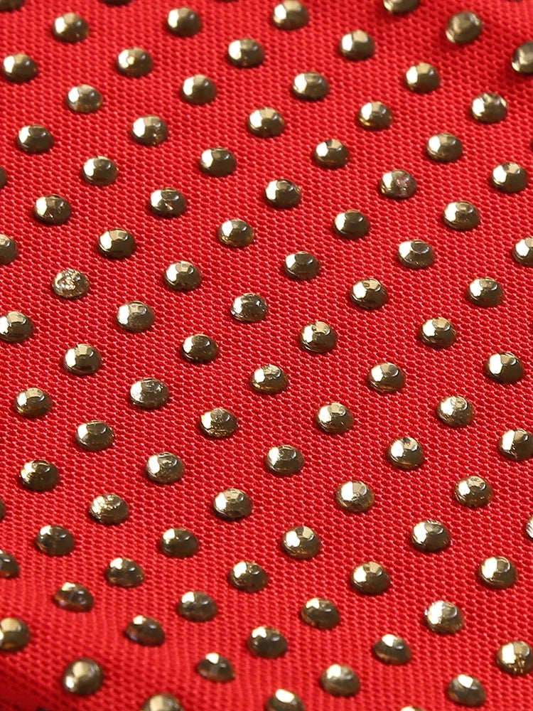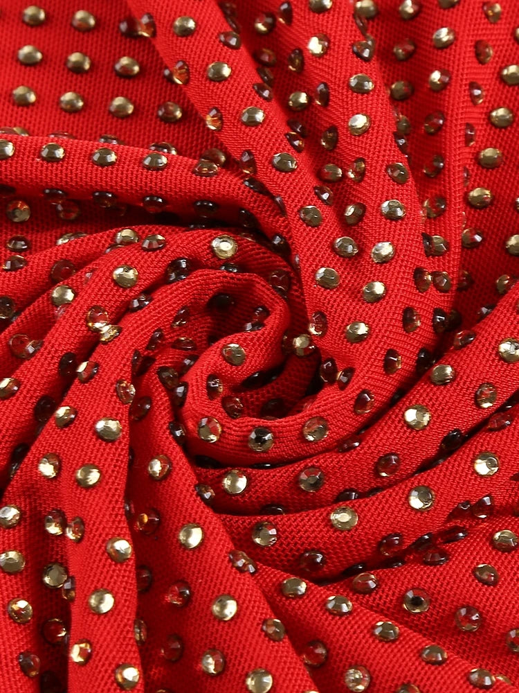 - Sheer mesh fabric with rhinestones
