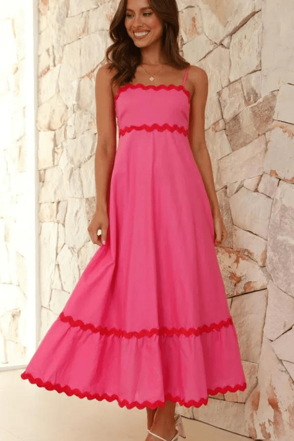 Embrace elegance with our Amillia maxi dress, featuring delicate ric rac trim and slender, adjustable straps for a perfect fit. An invisible back zip ensures a seamless look, complemented by a shirred back panel for added comfort. Flaunt your impeccable taste and embrace your femininity with this stunning wardrobe essential.