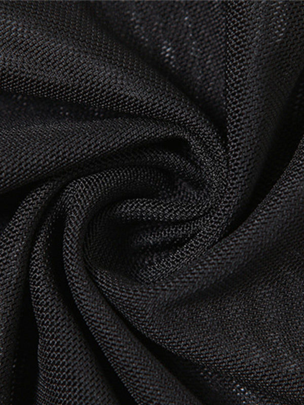 Black Mesh Butterfly Embroidery Backless Halter Vest
