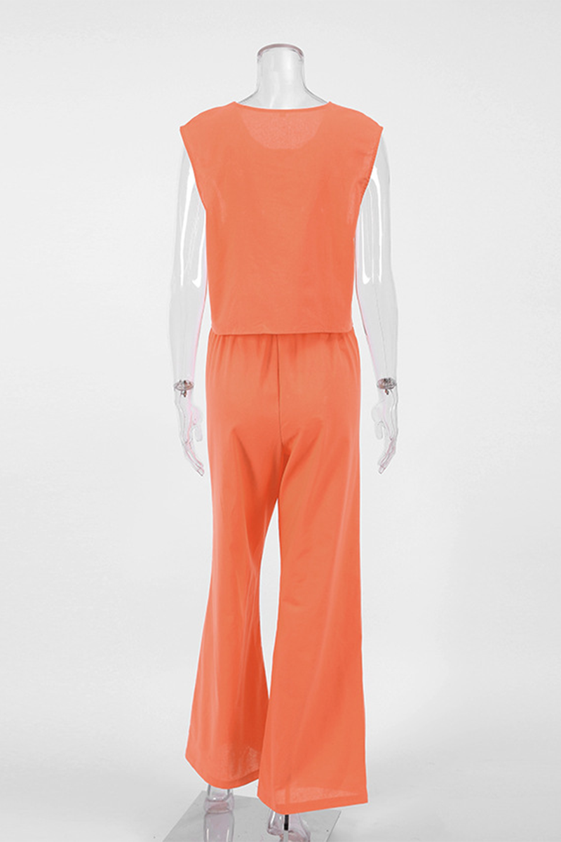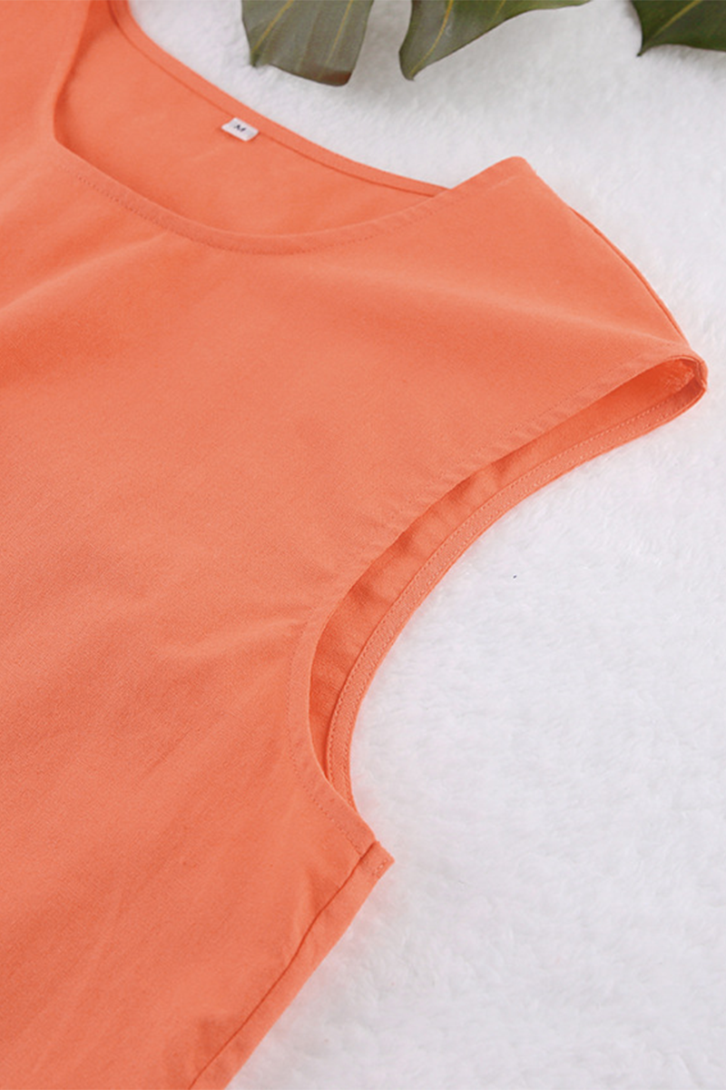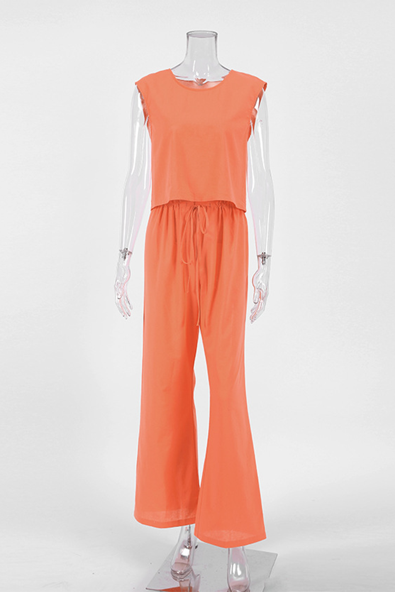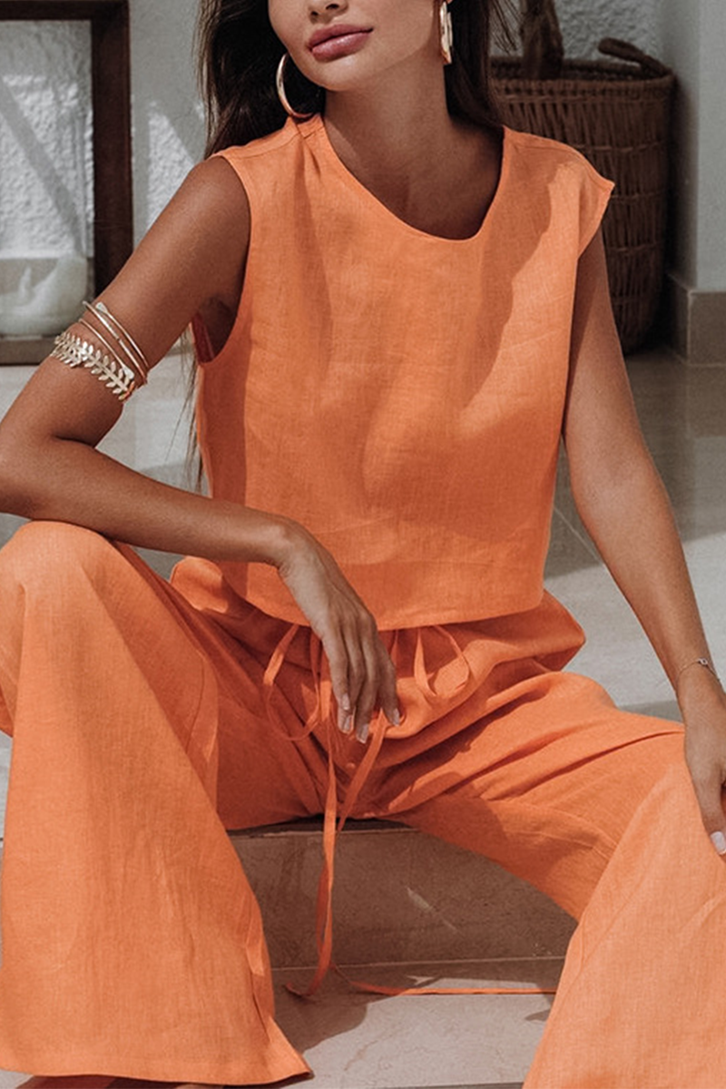 Conjunto informal de dos piezas, sin mangas, cuello redondo, color sólido, con cordones y diario