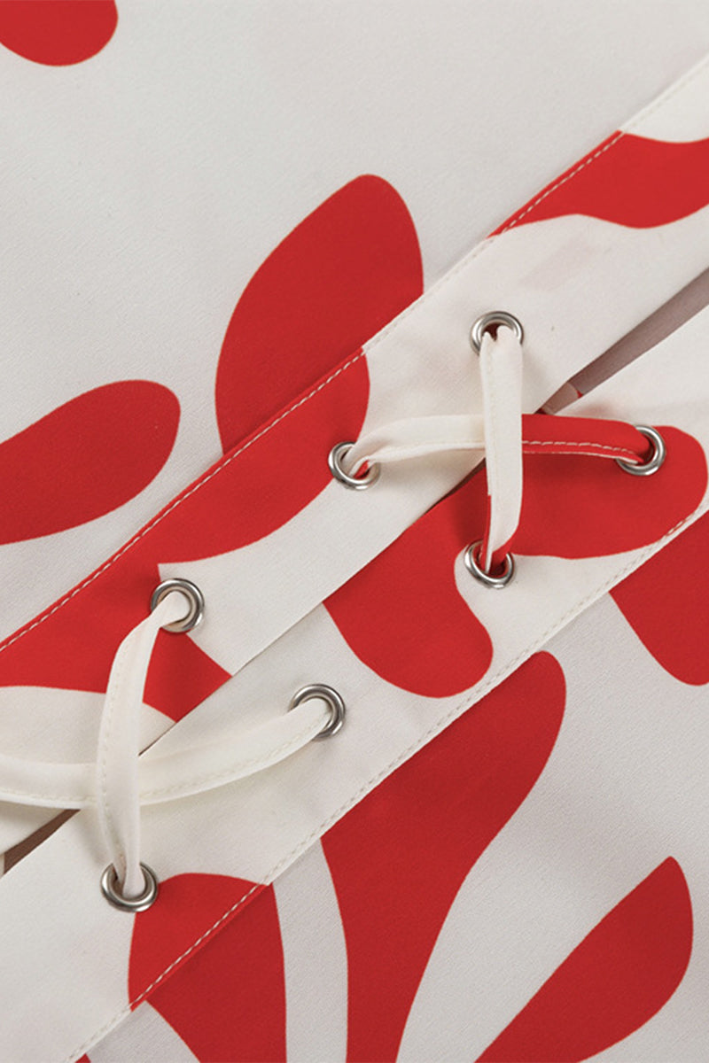 Conjunto informal de dos piezas con cuello vuelto, manga larga y patchwork floral