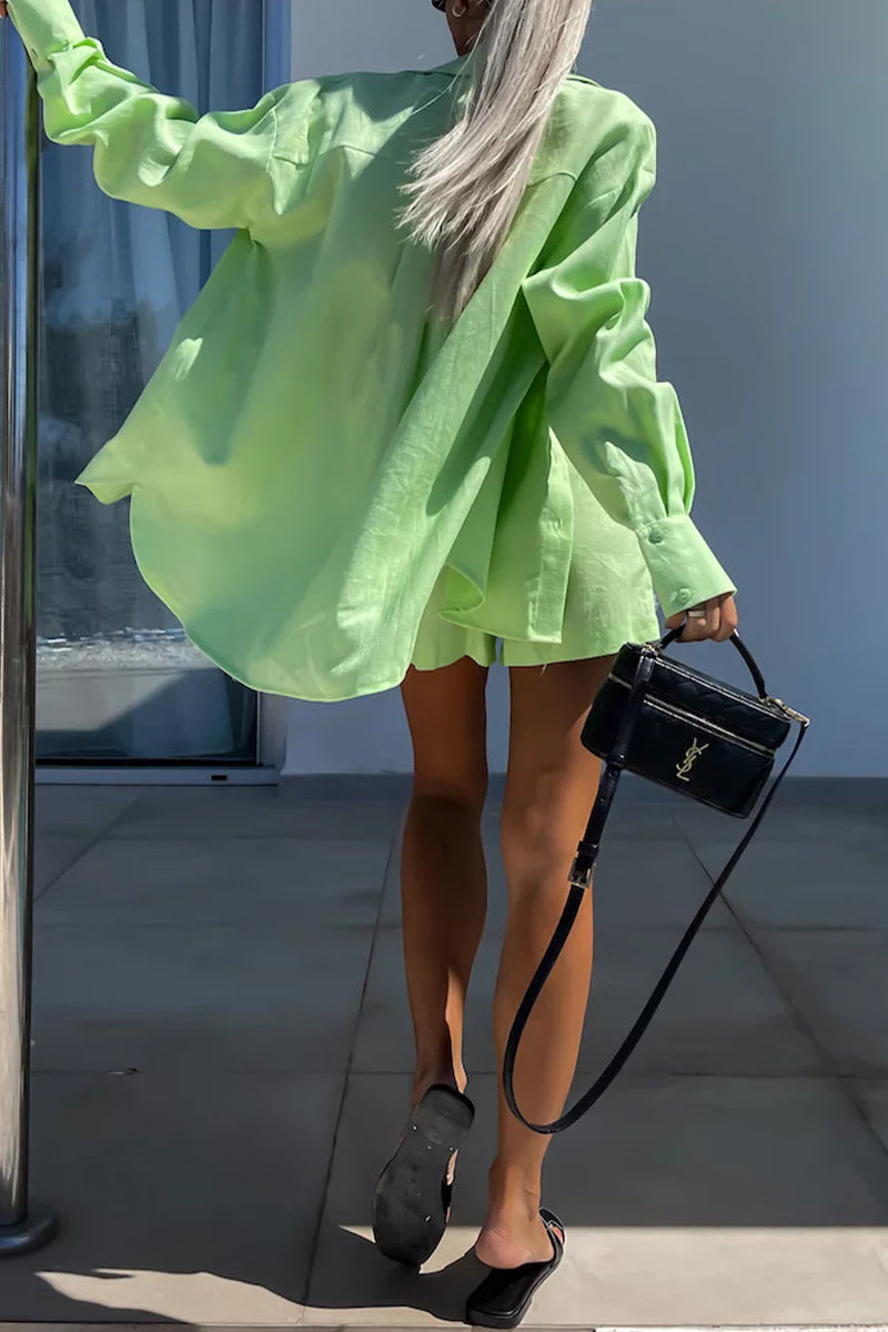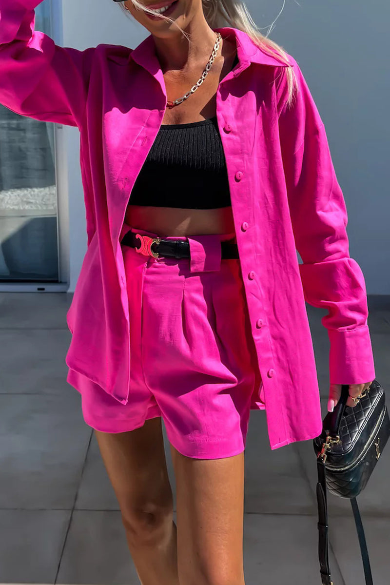Conjunto informal de dos piezas con botones y patchwork, cuello vuelto, manga larga (sin cinturón) (3 colores)
