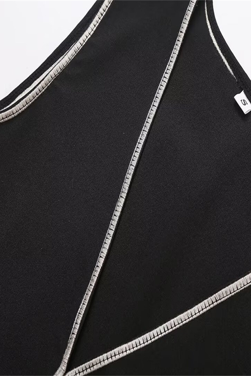 Conjunto informal de dos piezas con escote en V, sin mangas, color sólido, calado y contraste