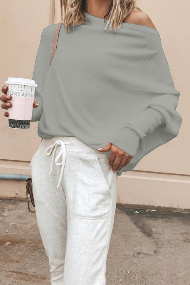 Tops casuales de un solo hombro con parches sólidos (5 colores)
