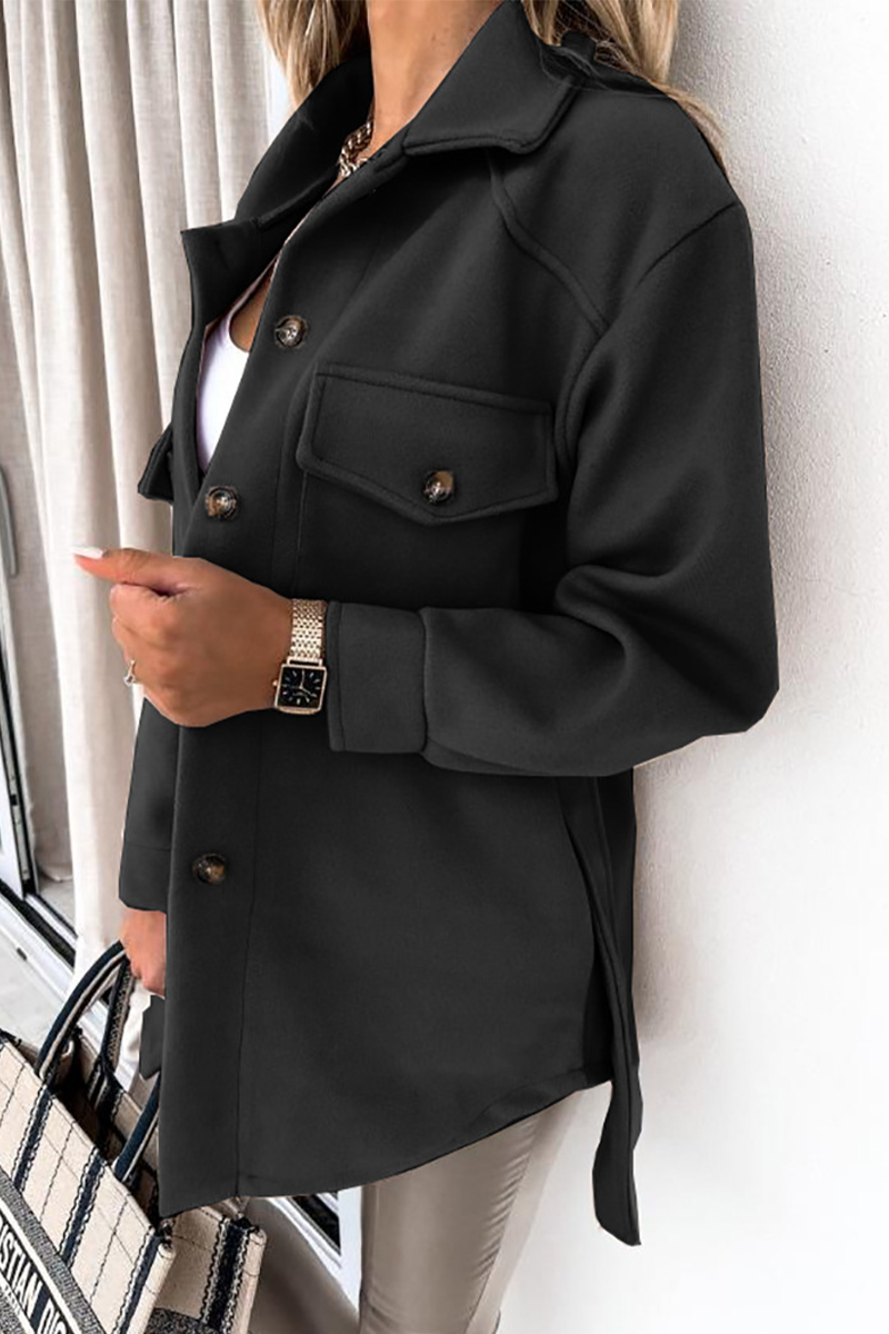 Prendas de abrigo informales con cuello vuelto y parches lisos (9 colores)
