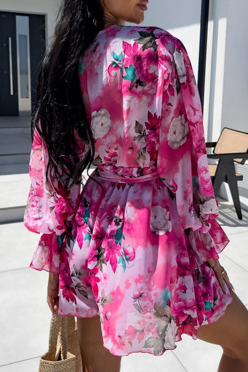 Mono informal de vacaciones con estampado de cebra, flores, encaje, cuello en V en contraste (3 colores)