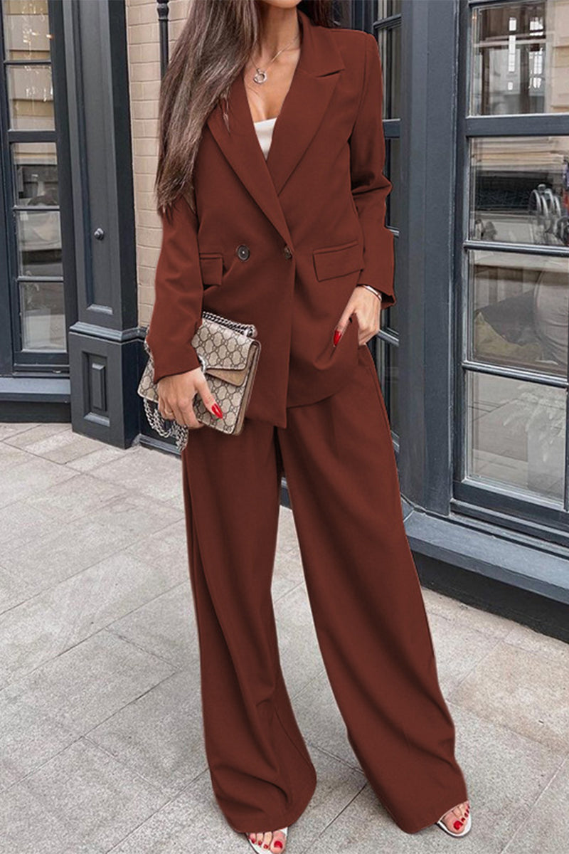Conjunto informal de dos piezas con cuello clásico y manga larga (3 colores)
