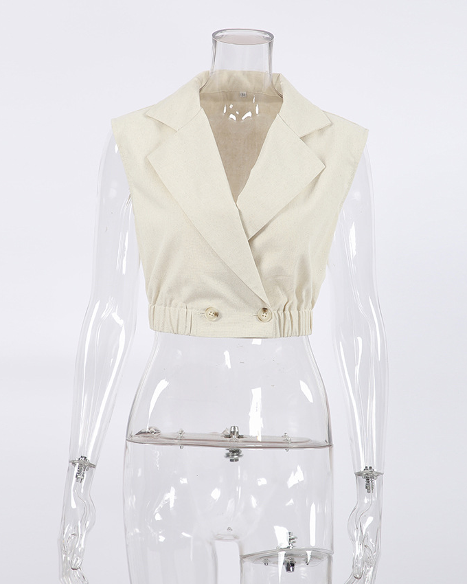 Cotton and Linen Lapel Sleeveless Cropped Vest