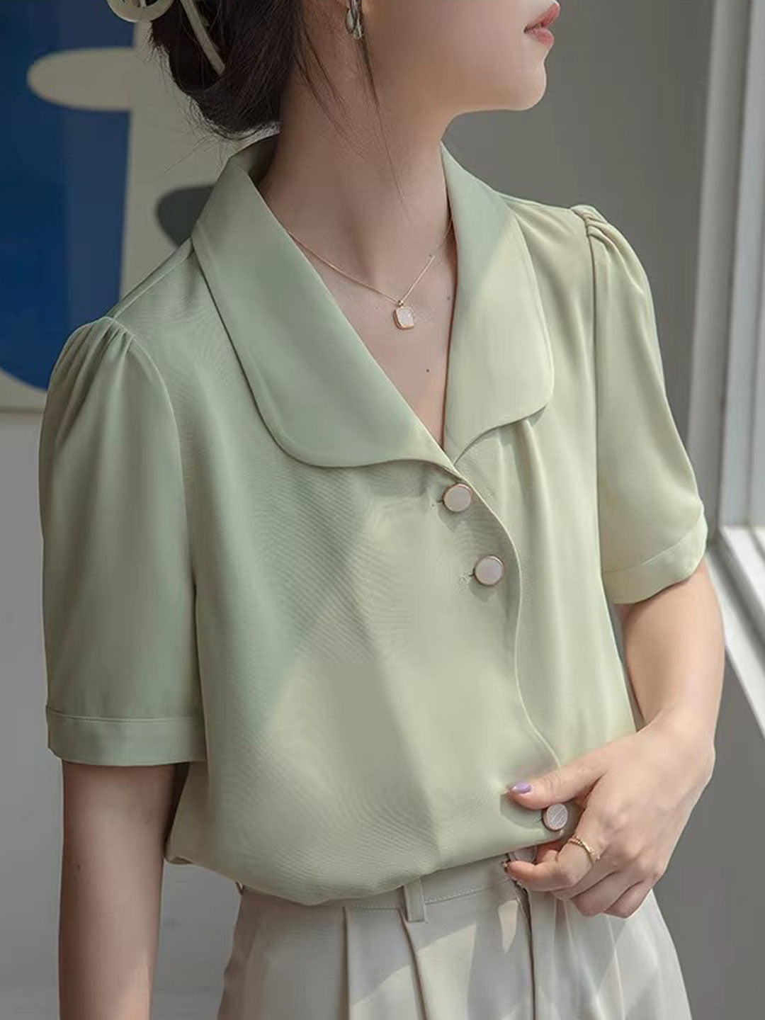 Destiny Loose V-Neck Solid Chiffon Shirt