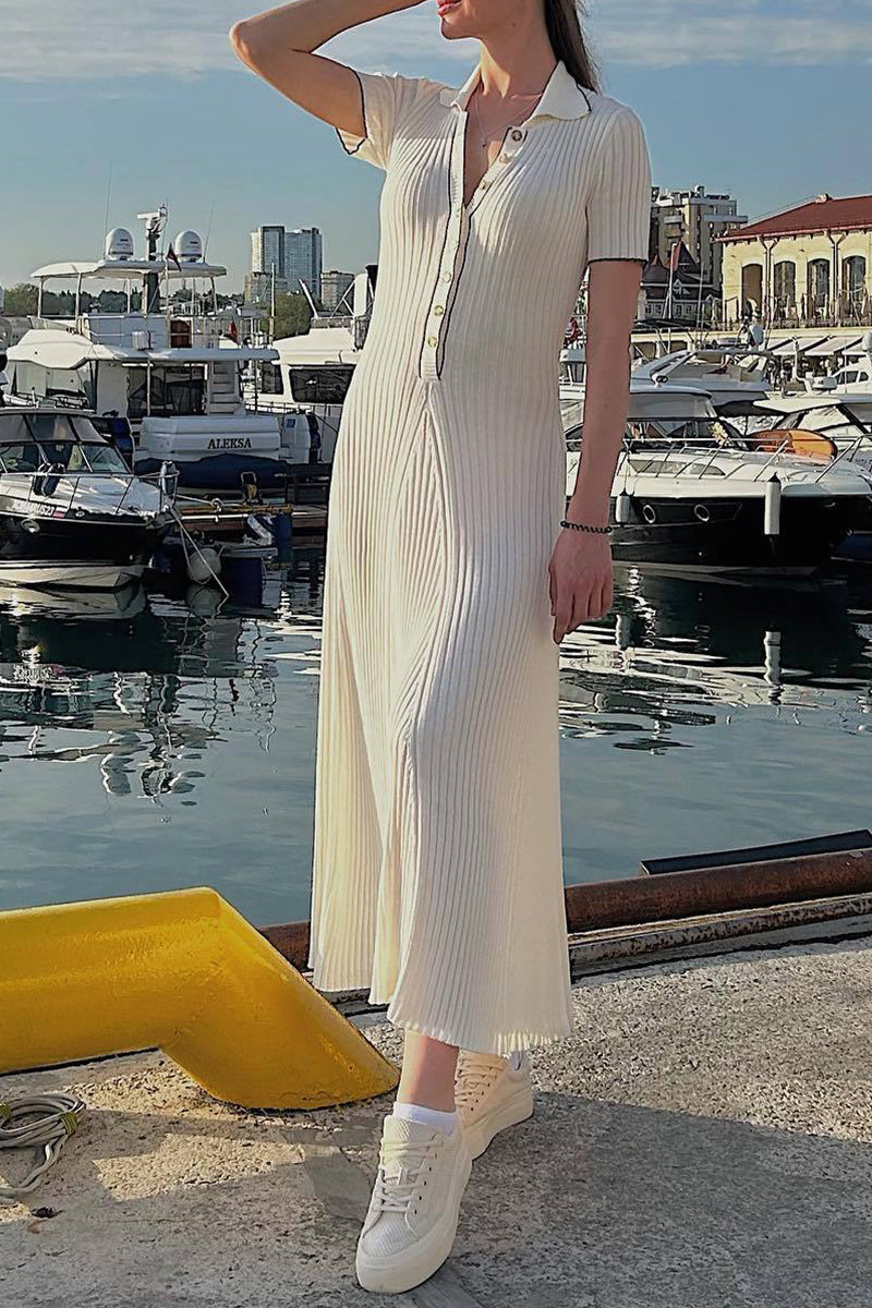 Elegante vestido de corte A con cuello vuelto y hebilla sólida