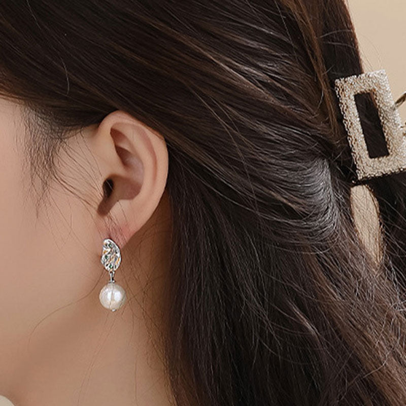 Emerald CZ Hammered Baroque Pearl Drop Earrings