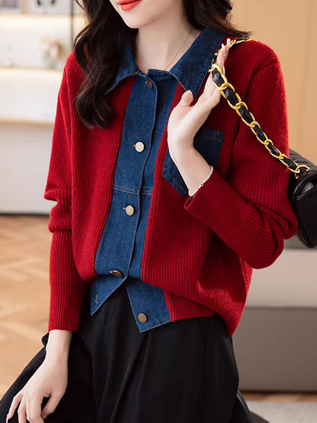 Eva Casual Lapel Patchwork Knitted Cardigan