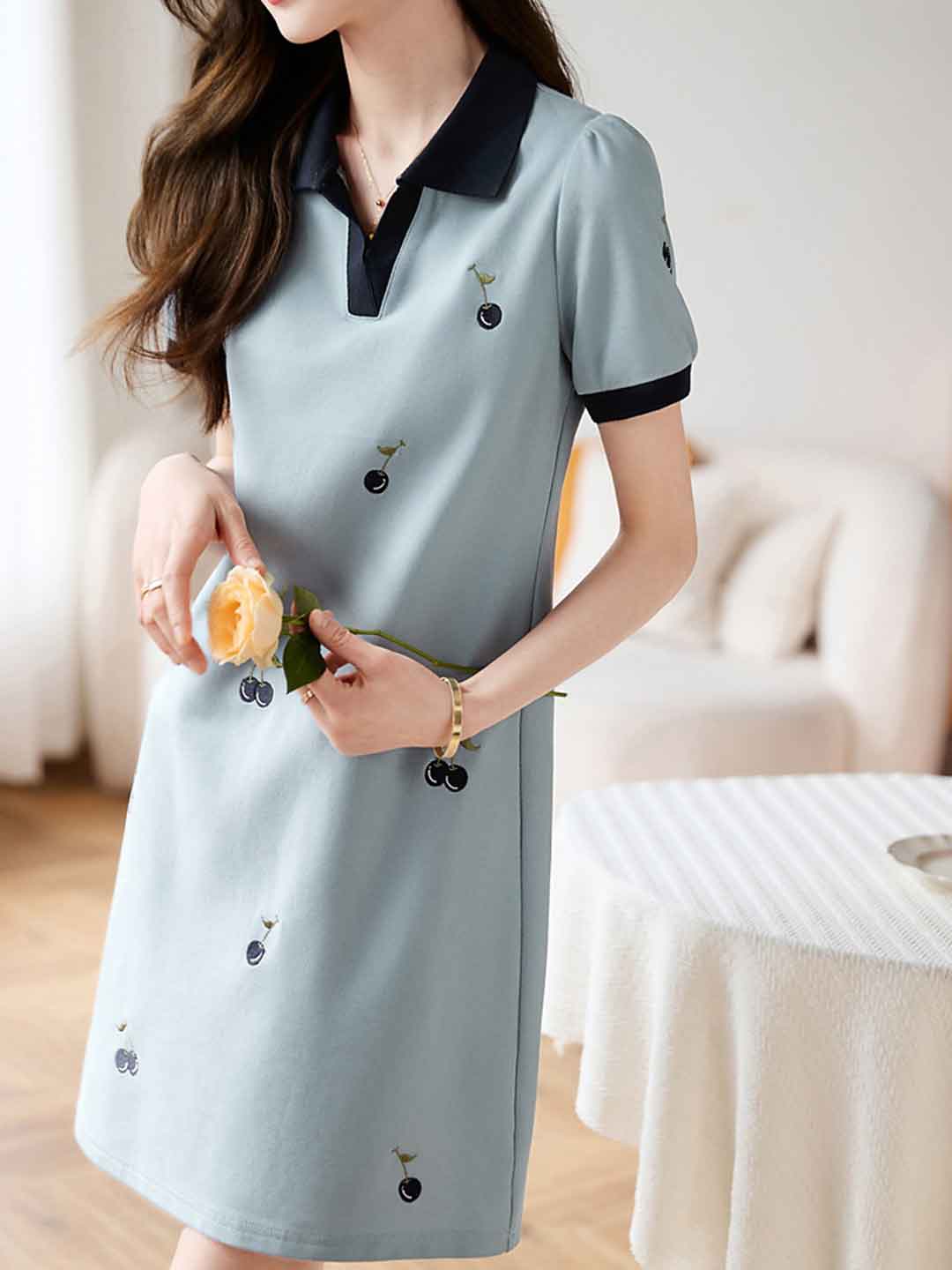 Faith Vacation Polo Collar Contrasted Color Stitching Dress