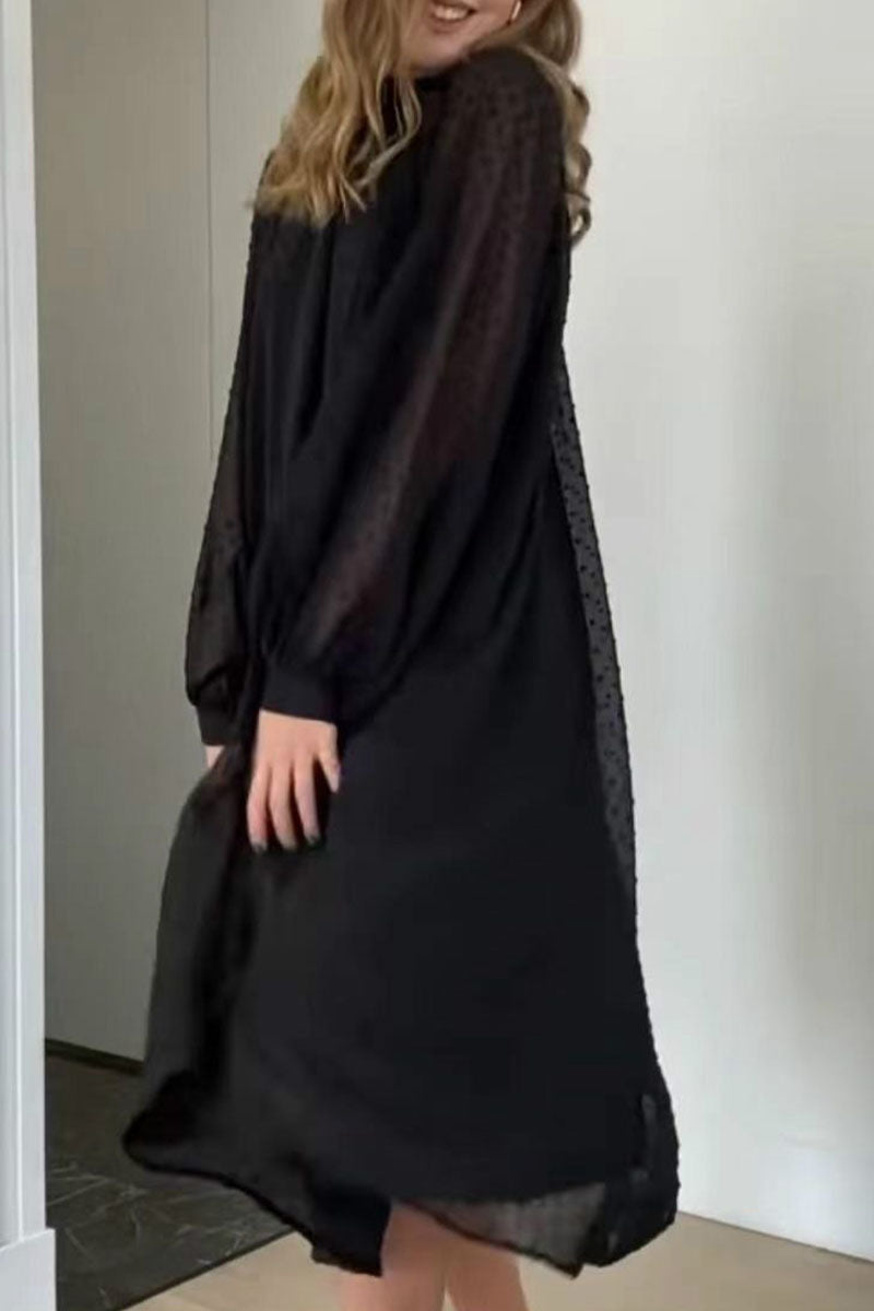 Vestidos elegantes de moda con cuello alto, línea A y parches sólidos