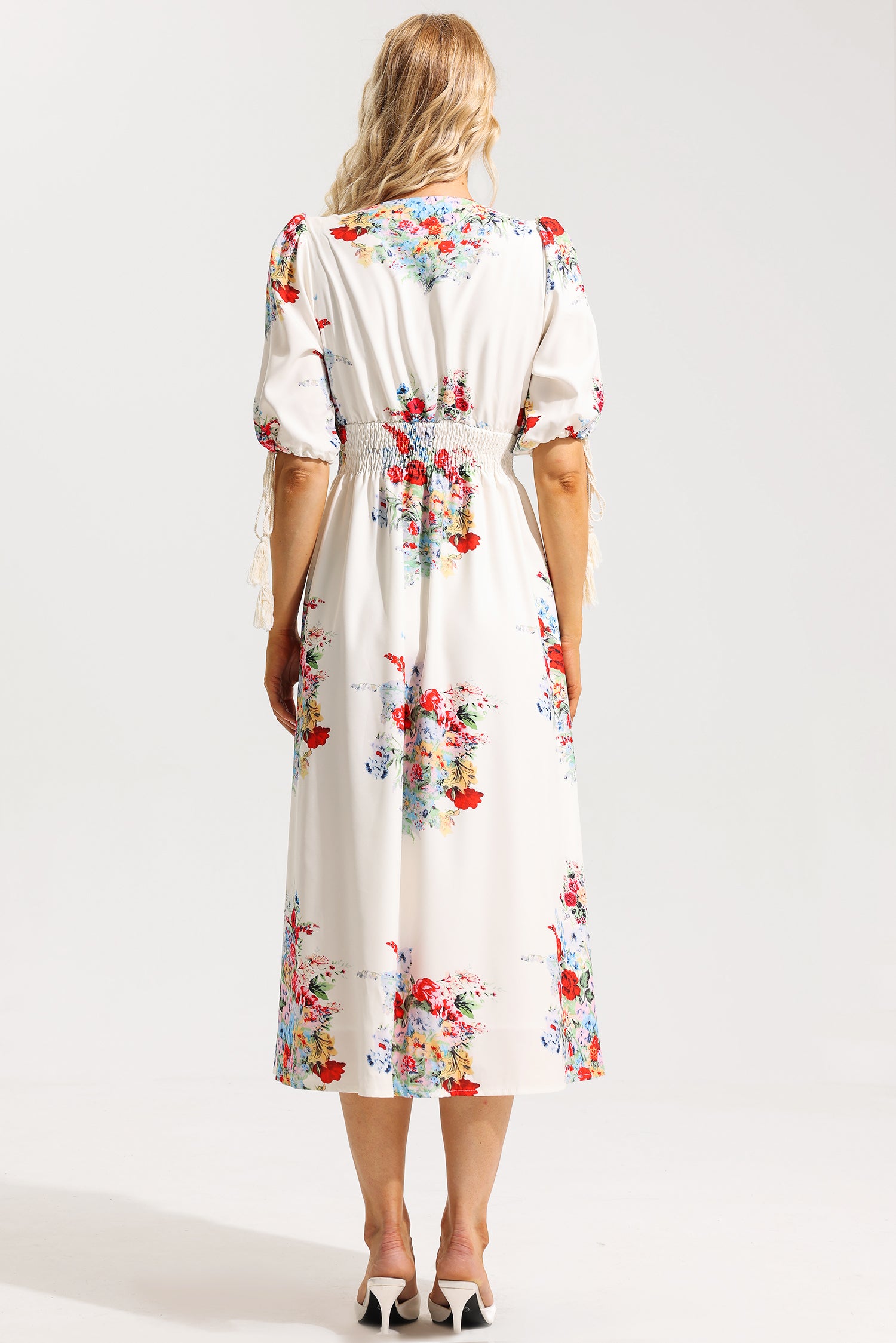 Vestido midi con mangas abullonadas y bajo floral