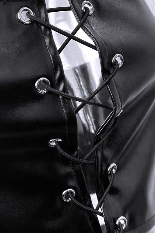 Halter Tie Top High-Waisted PU Pants Two Pieces Set