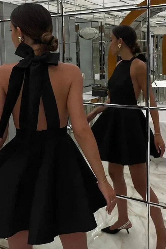 This stylish mini dress features a hollow-out design and a flattering high waist. creating a chic A-line silhouette. Perfect for summer outings and special occasions. it combines elegance with comfort.