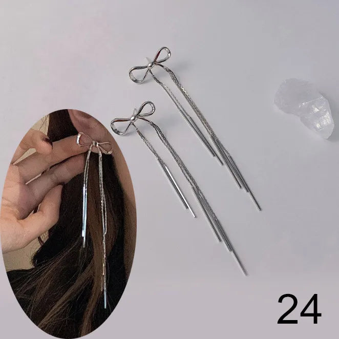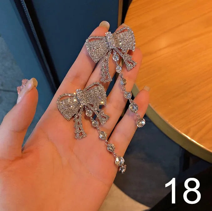 Lizakosht Korean Dangle Drop Earrings Kawaii Cute Women Wholesale Black Tulle Yarn Rhinestone Bow Knot Tie Fall Winter Fashion Jewelry