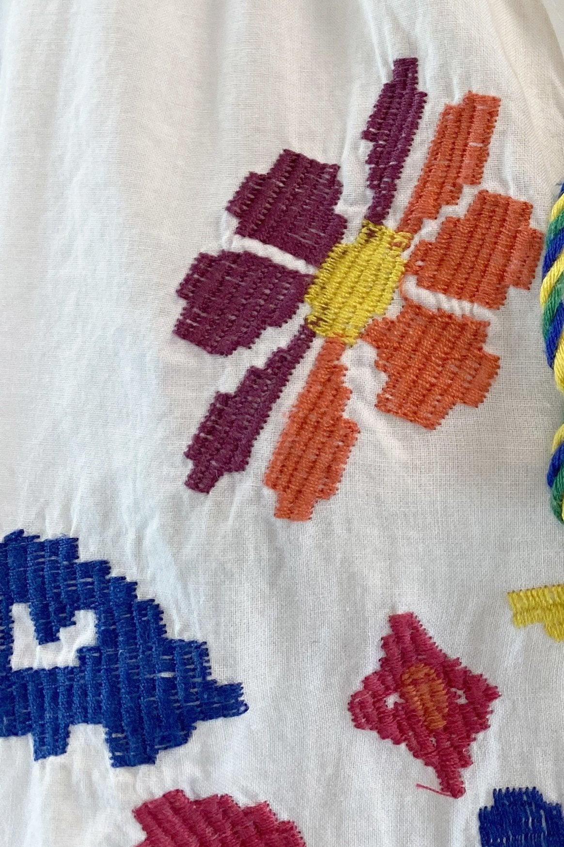 - Estampado floral bordado al frente, flecos multicolor.