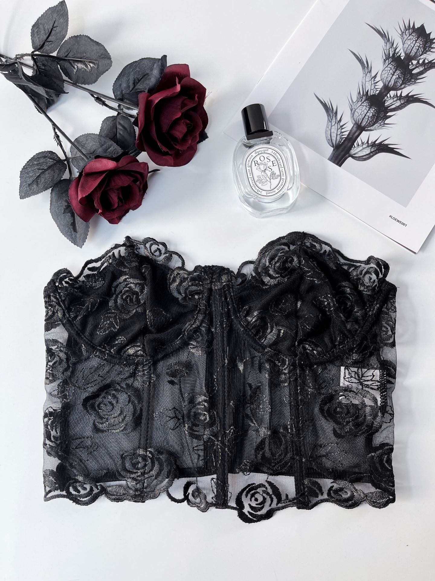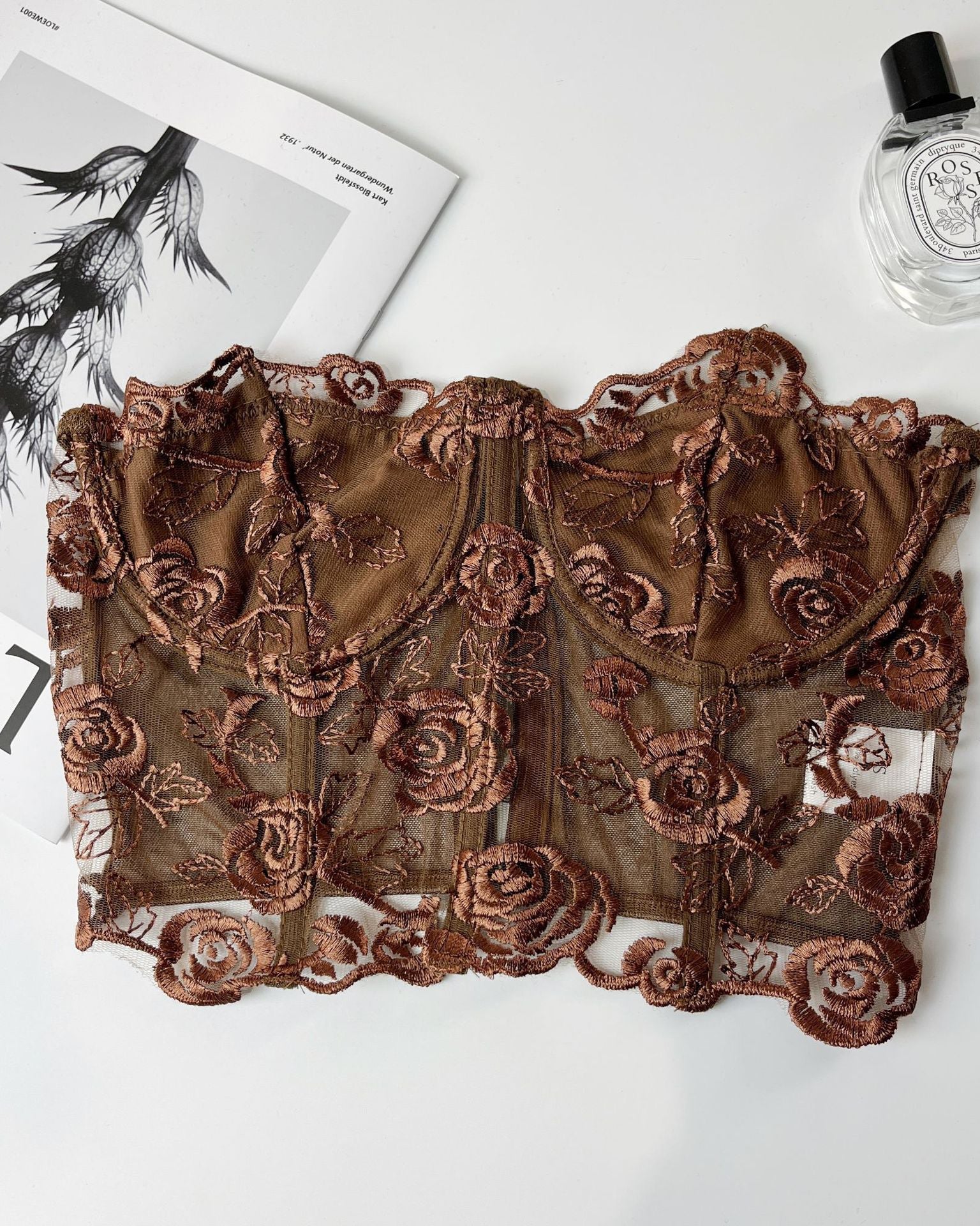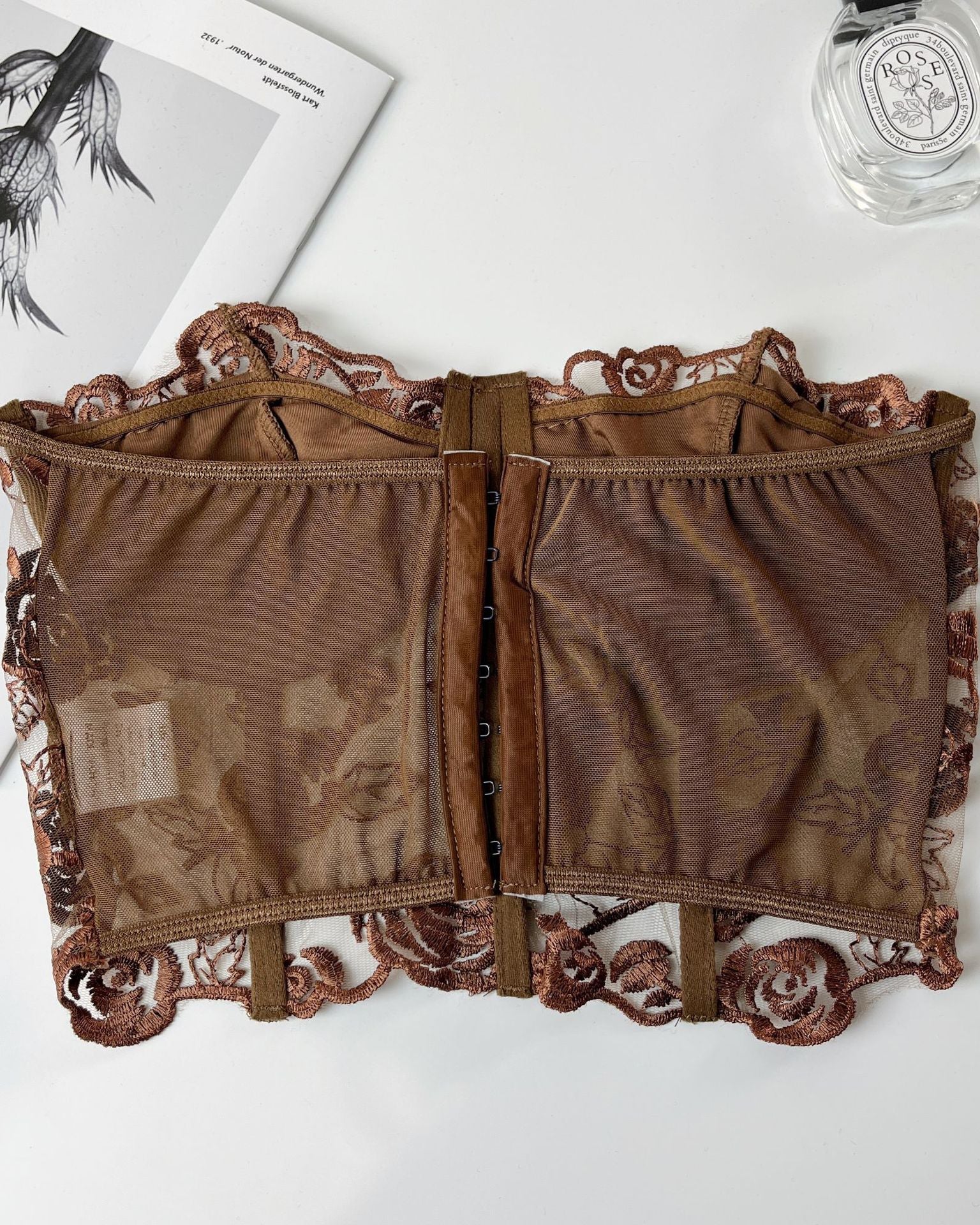 Lace Mesh Rose Tube Top Keel Vest
