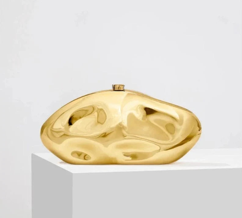Introducing the Livia Handbag, a stylish and high-quality acrylic clutch bag perfect for evening parties. Made with a durable metal frame, shiny gold, silver, and blue finishes, and an eye-catching egg shape design, this 2024 new release is a must-have for any fashion-forward woman.