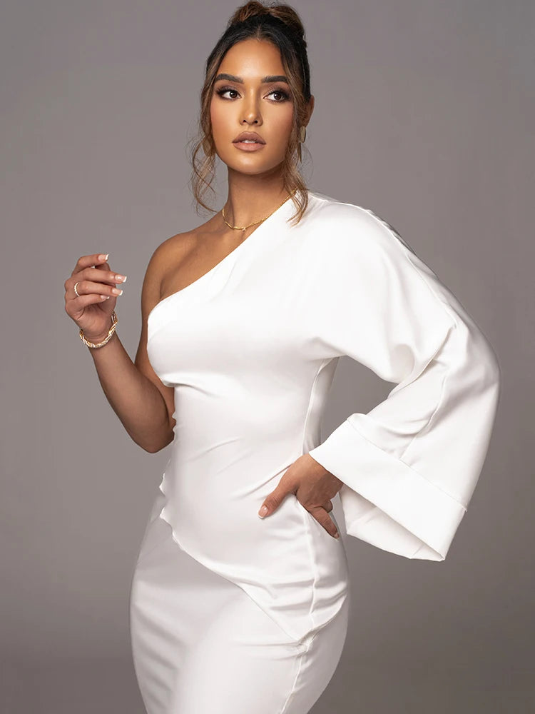- Escote: Cuello diagonal