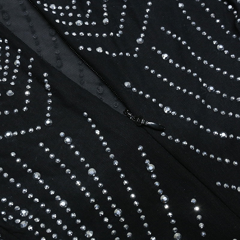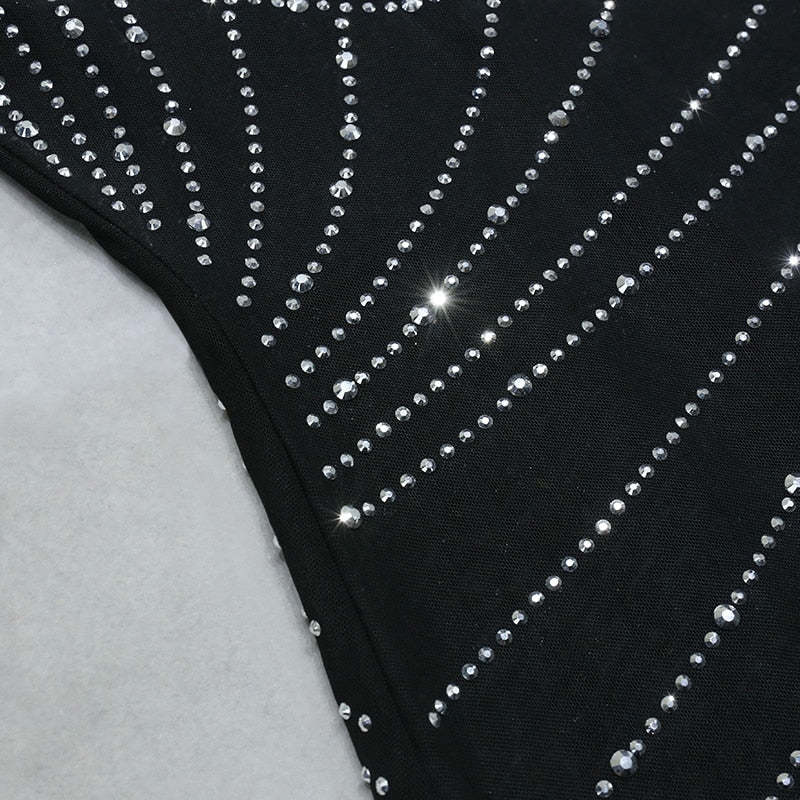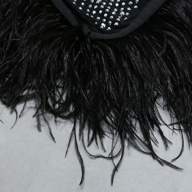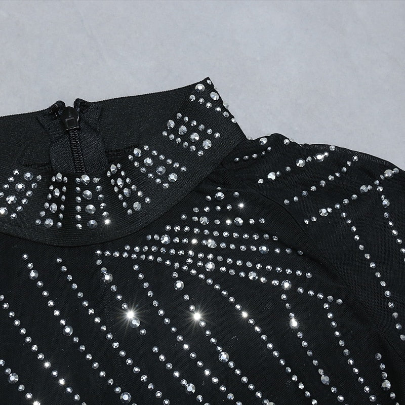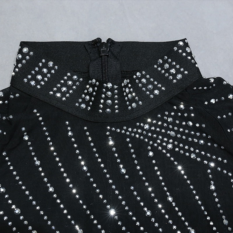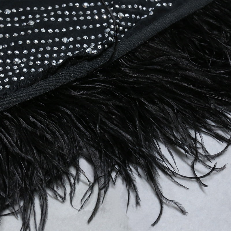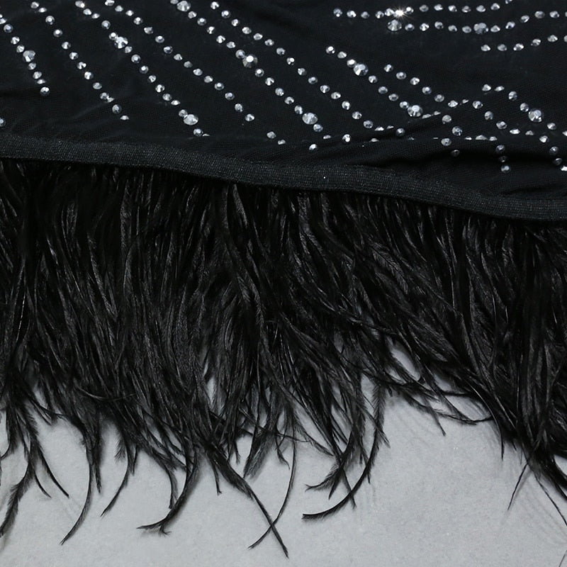 Nathalie Mesh Rhinestone Feather Dress with Long Sleeves