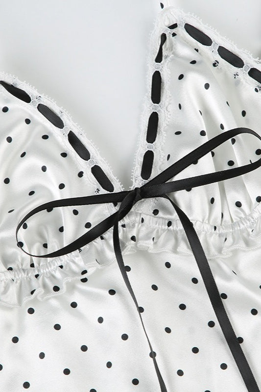 Polka Dot Lace Trim V-Neck Cami Crop Top