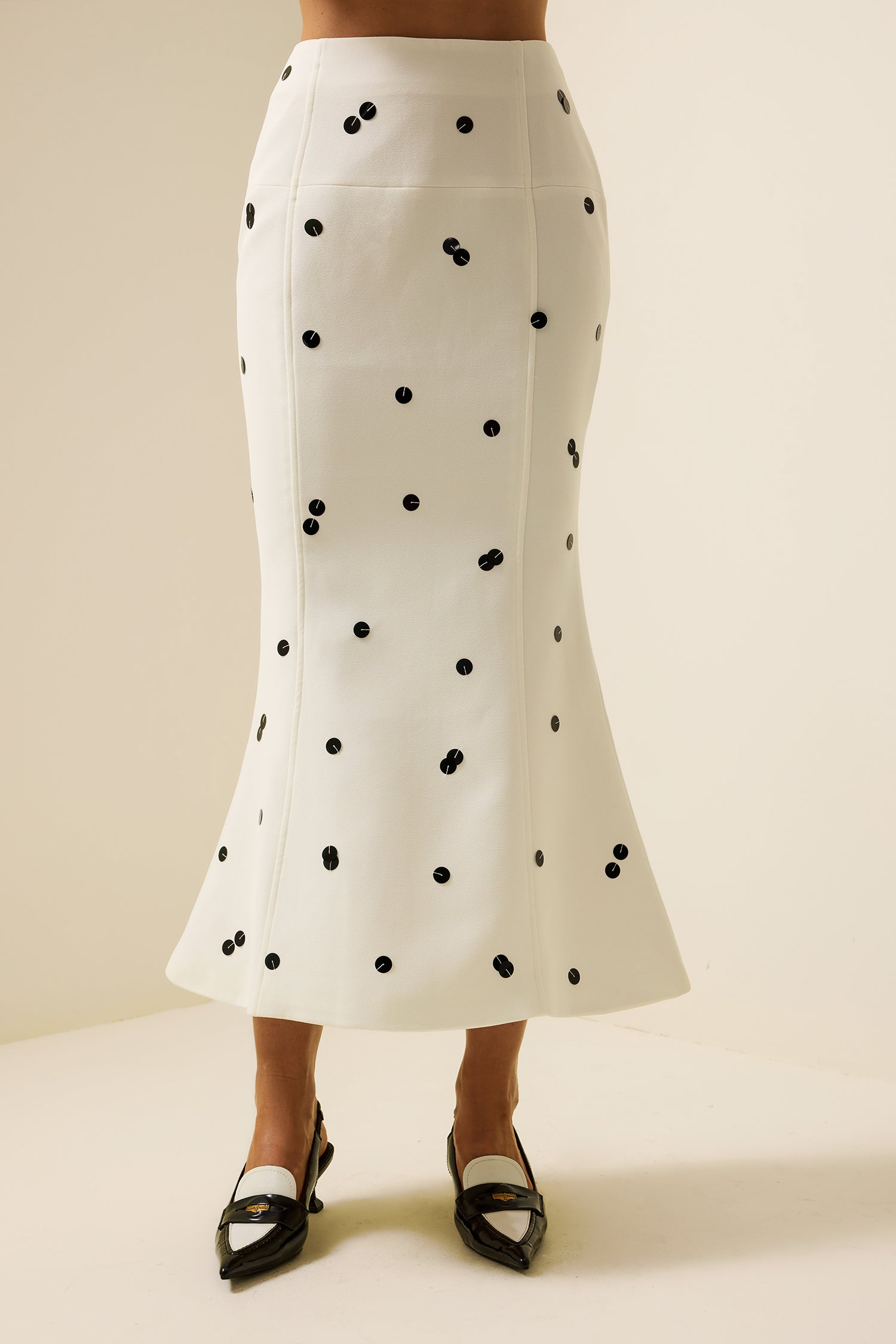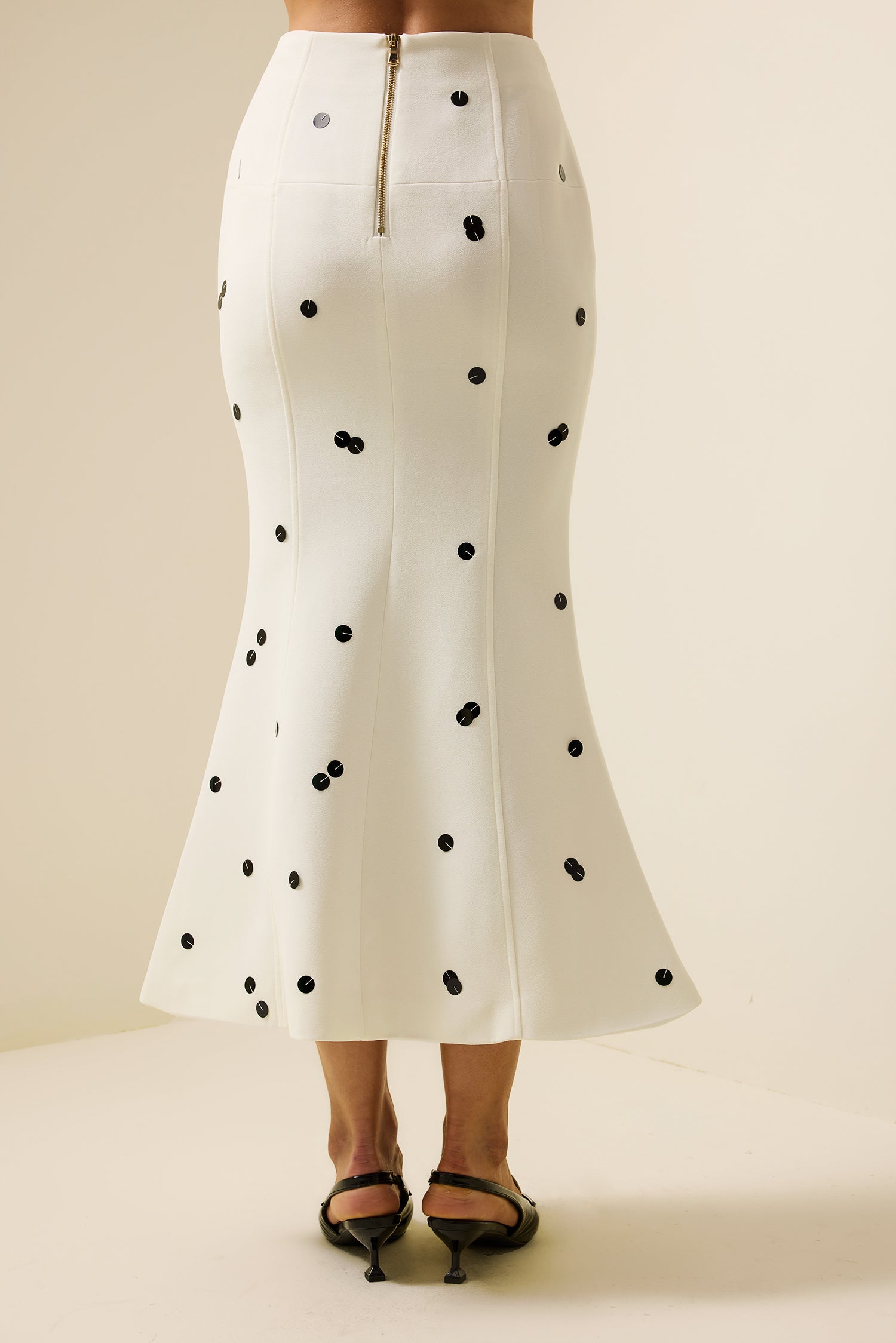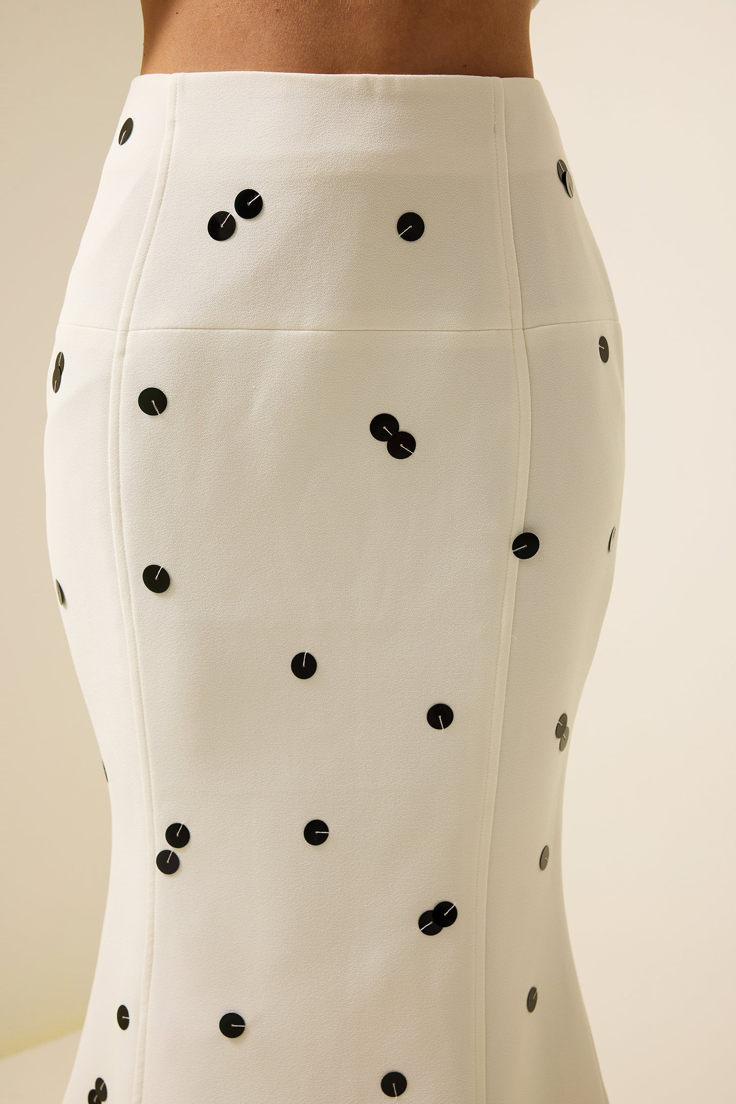 - Lentejuelas, cintura alta, sirena, falda, blanca