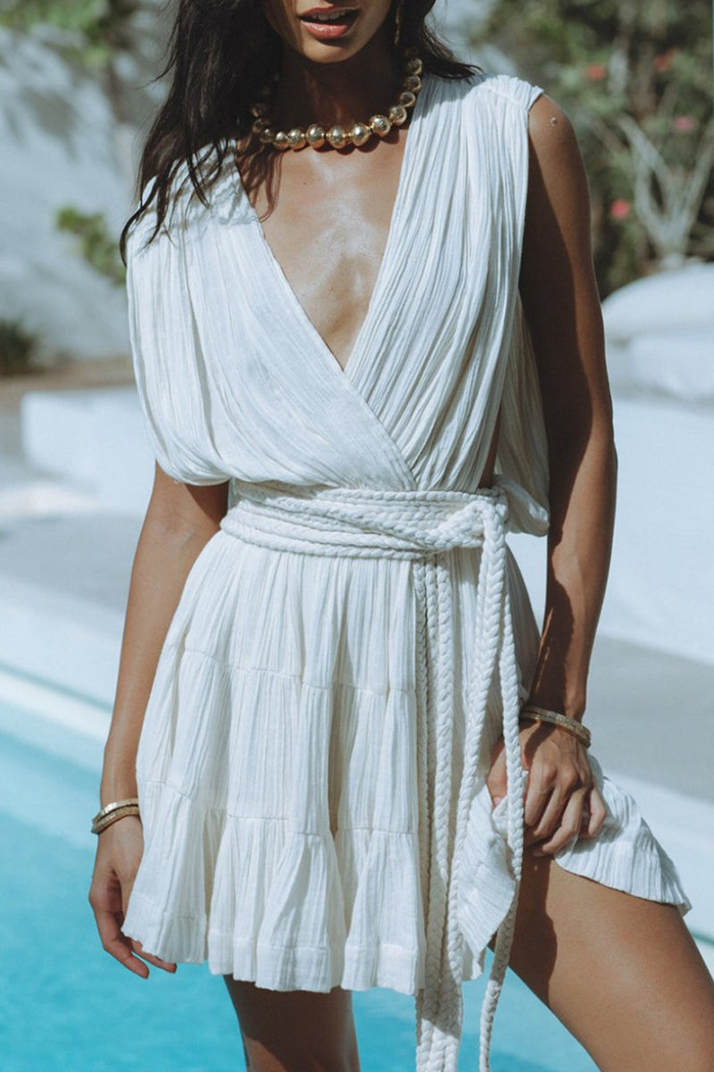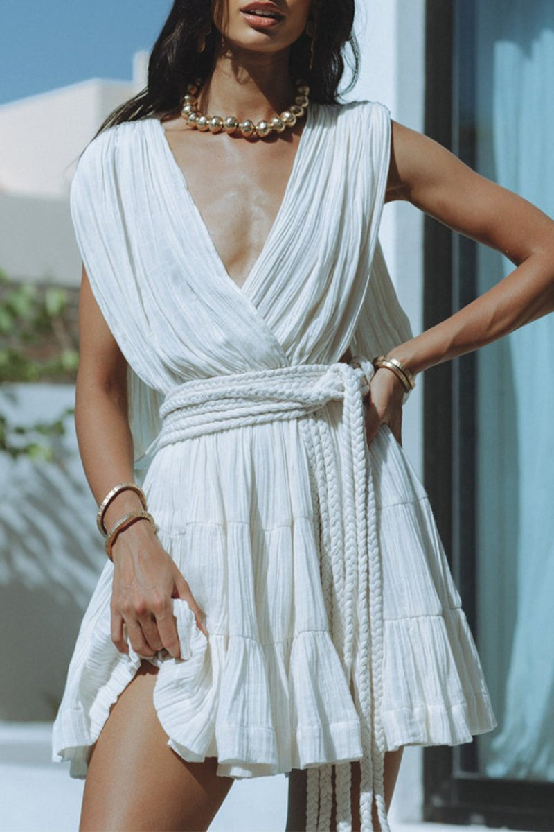 Vestidos sexis de diario de color sólido con cordones, espalda descubierta, cuello en V y sin mangas