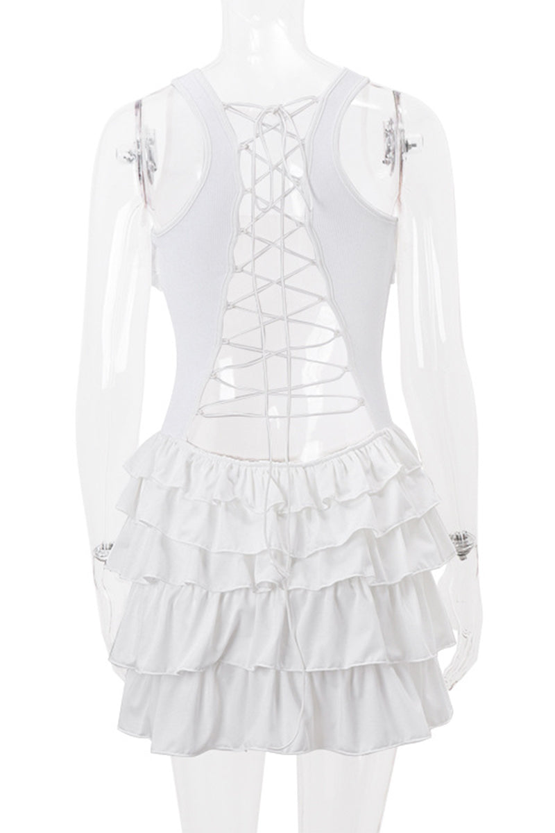 Vestido sexy de fiesta con escote en V, tirantes finos y espalda descubierta, con volantes y falda pastel