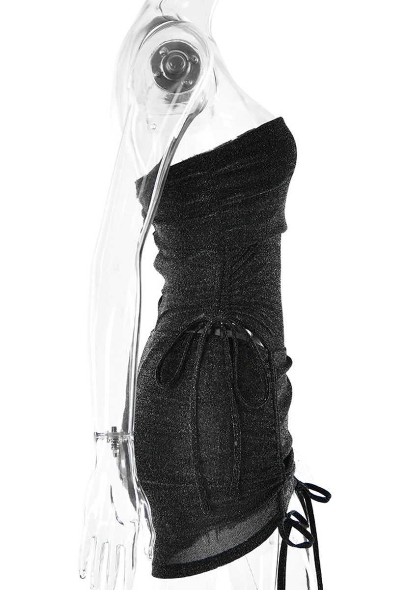 Traje de baño sexy de dos piezas con lentejuelas, sin tirantes y sin mangas, color sólido y cordón