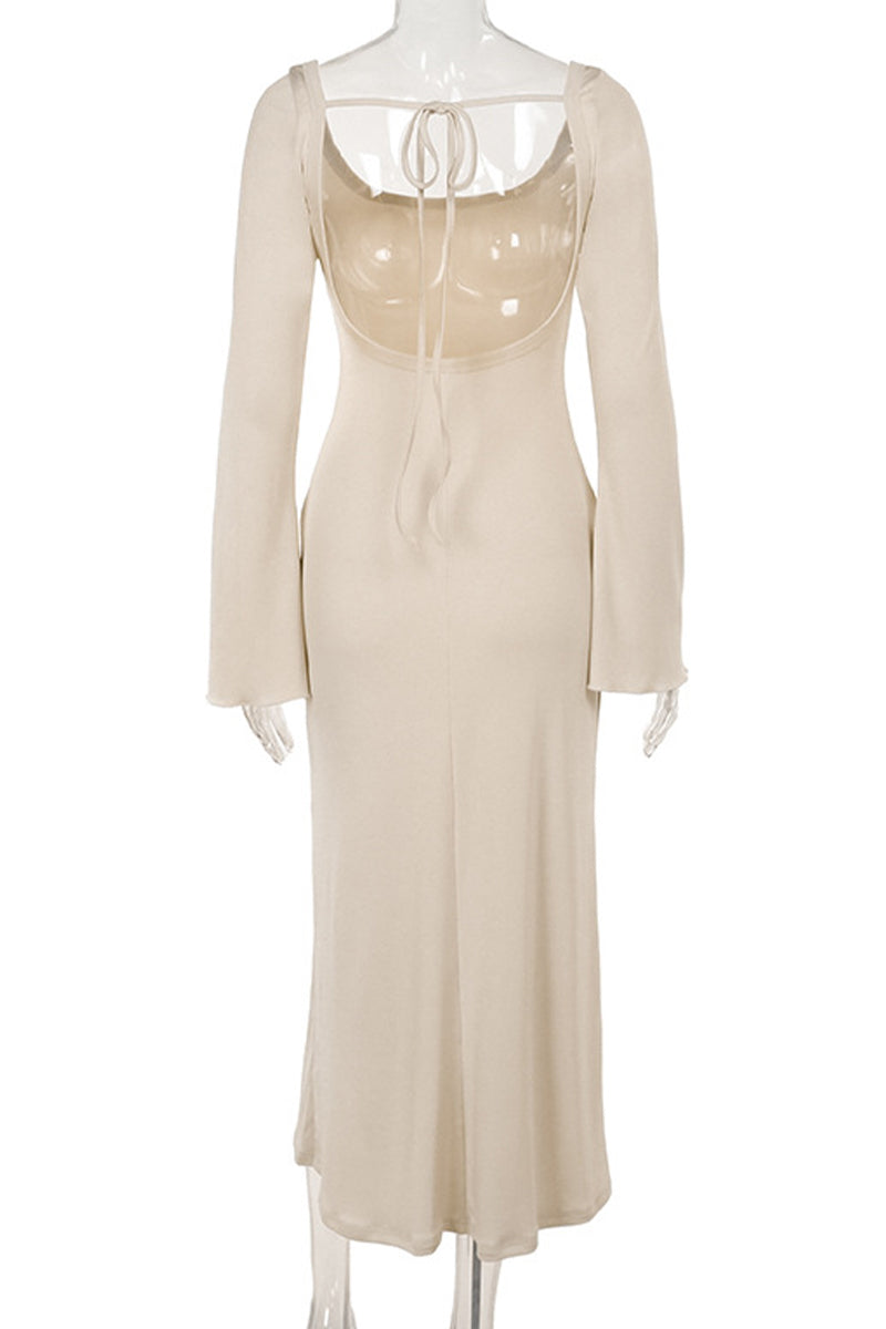 Vestidos sexis de vacaciones de color liso con cordones, espalda descubierta, escote cuadrado, falda de un solo paso