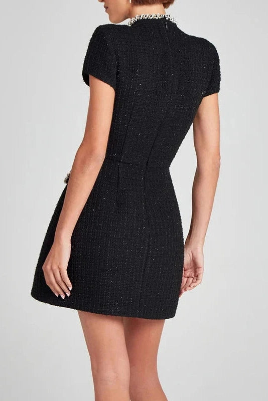 Slim Fit A-Line Mini Dress with O Neck and Short Sleeves