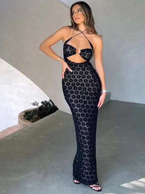 Vestido largo de color liso con cuello colgante, sexy, con huecos, para mujer, con perspectiva, bolso y caderas, estilo urbano, moderno
