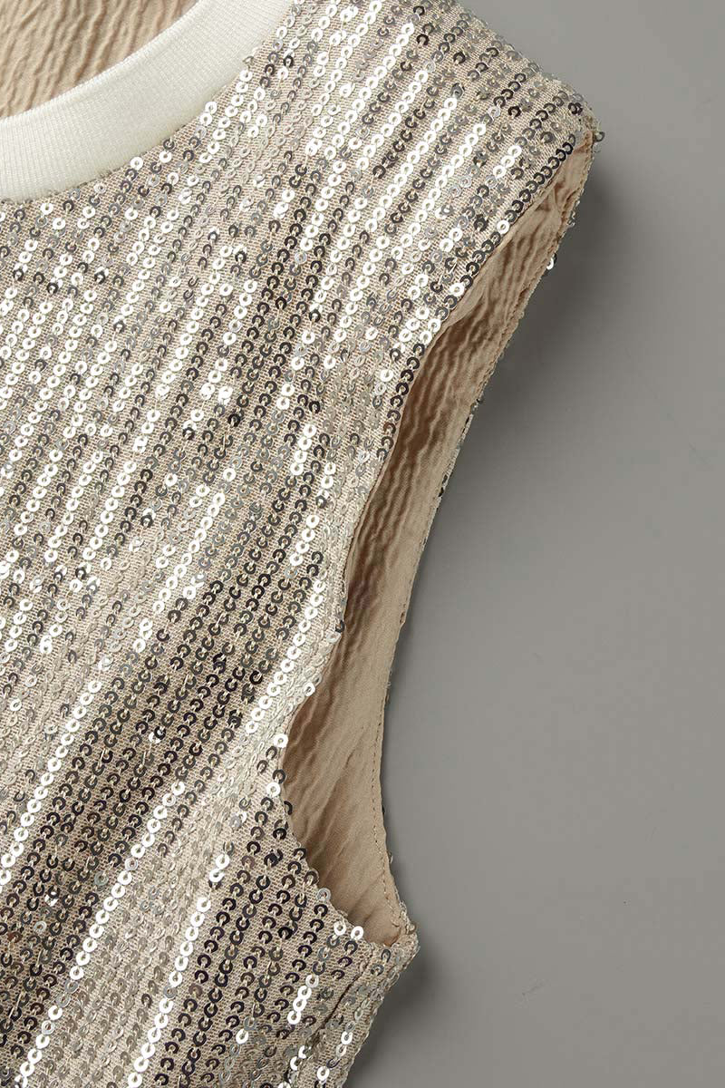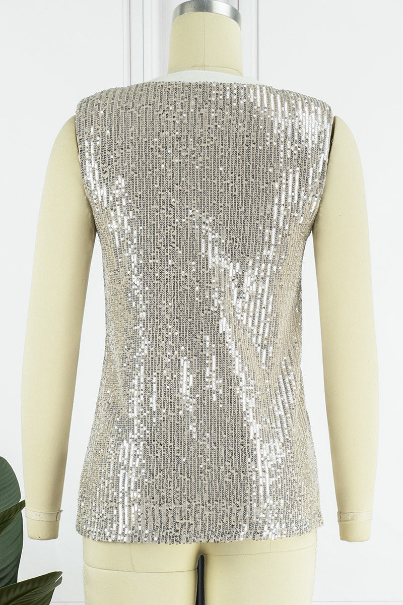 Tops sin mangas con cuello redondo y lentejuelas sólidas