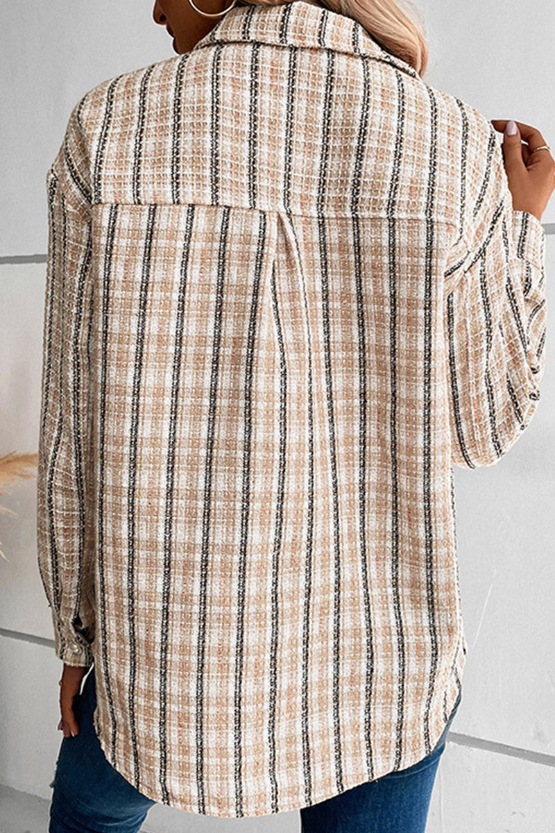 Blusa elegante y dulce con cuello vuelto y botones a cuadros