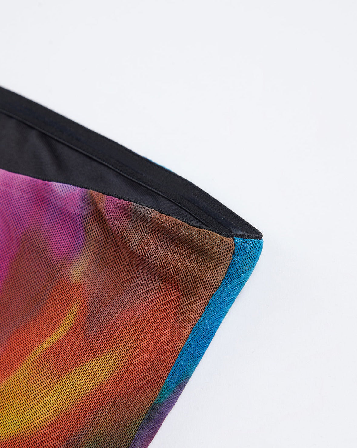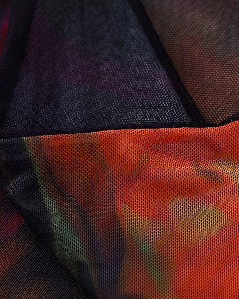 Tulle Printed Mesh Strapless Tube Midi Dress