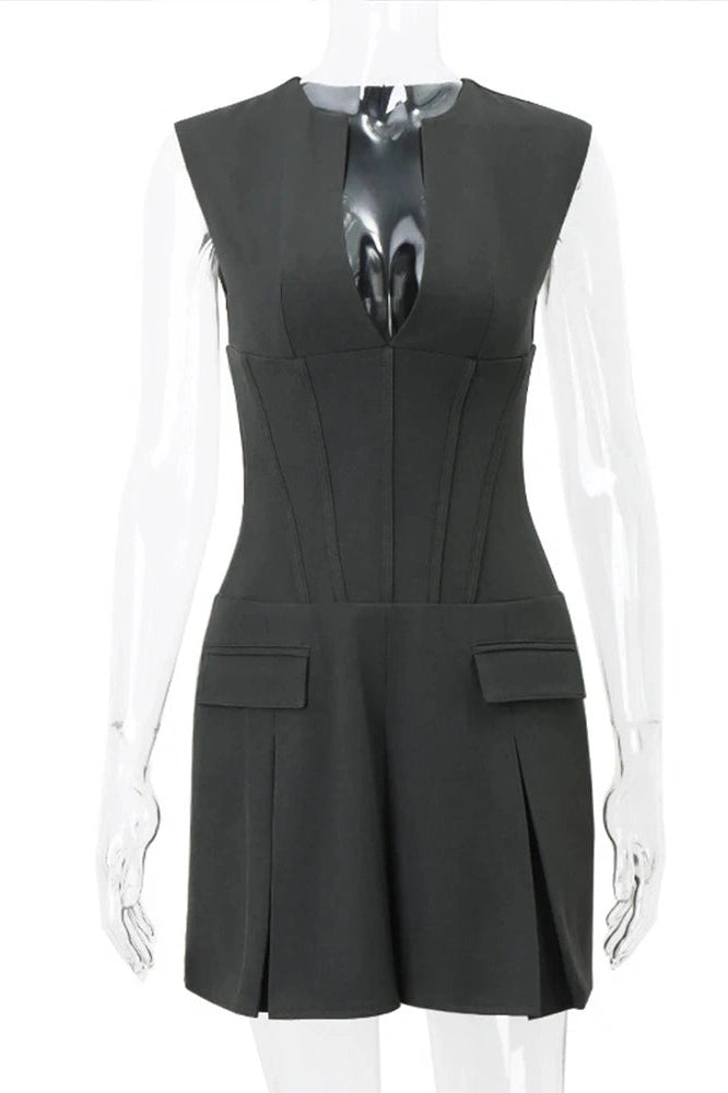 V-Neck Sleeveless Mini Dress with High Waist