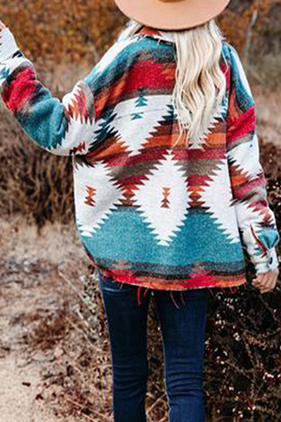 Prenda de abrigo con cuello vuelto, hebilla de bolsillo y estampado vintage