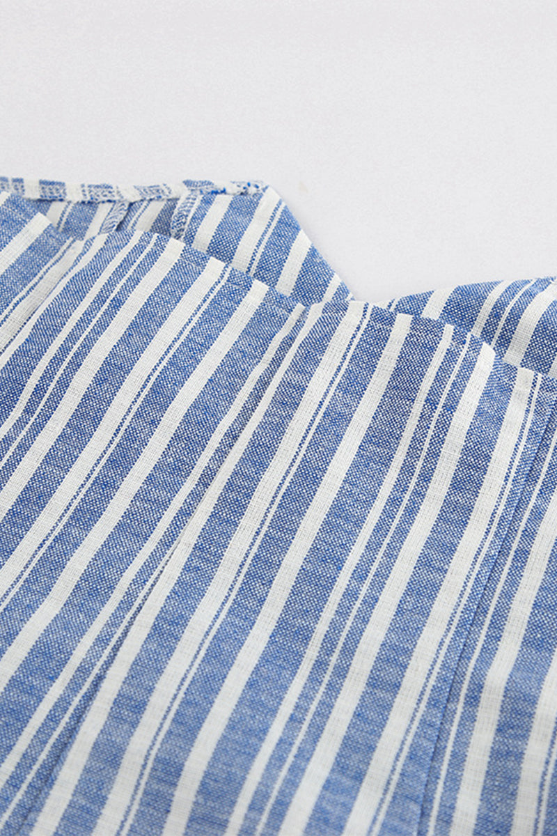 Conjunto elegante de dos piezas con cuello en V, sin mangas y rayas en contraste