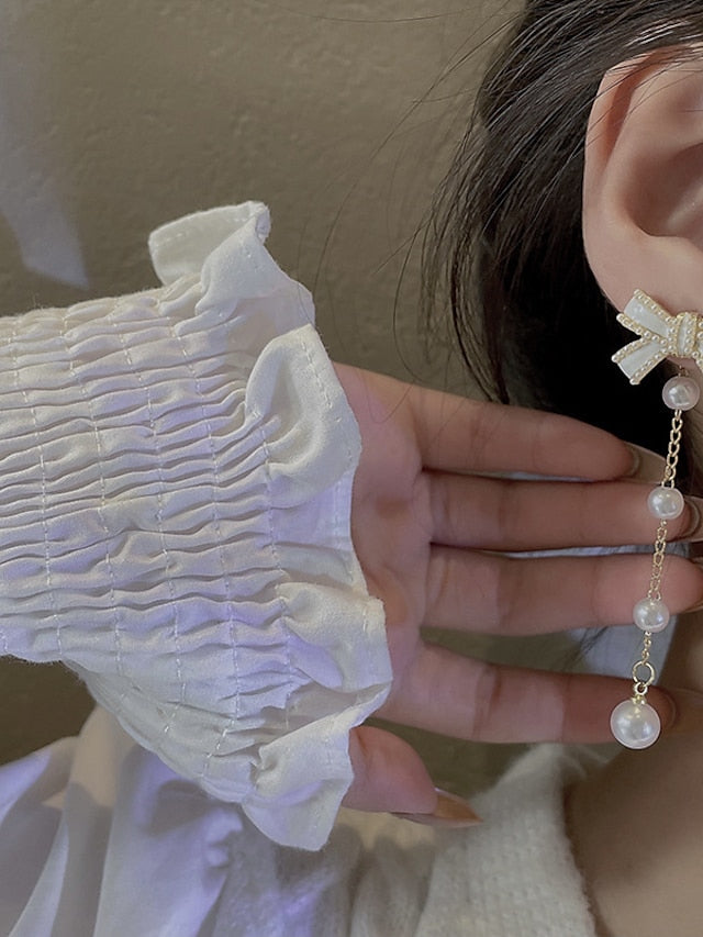 1 Pair Earrings For Girls' Wedding Imitation Diamond 18K Gold Long Pearl Earrings Baroque Drop Dangle Earrings for Women Statement Snake Chain Dainty Adjustable Stud Jewelry for Wedding for Women