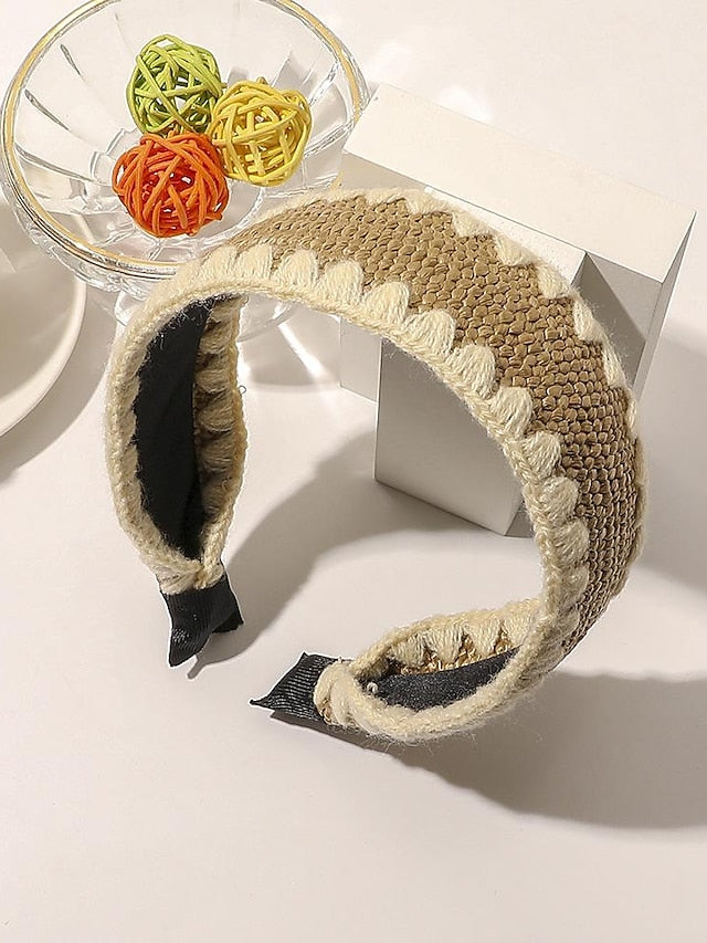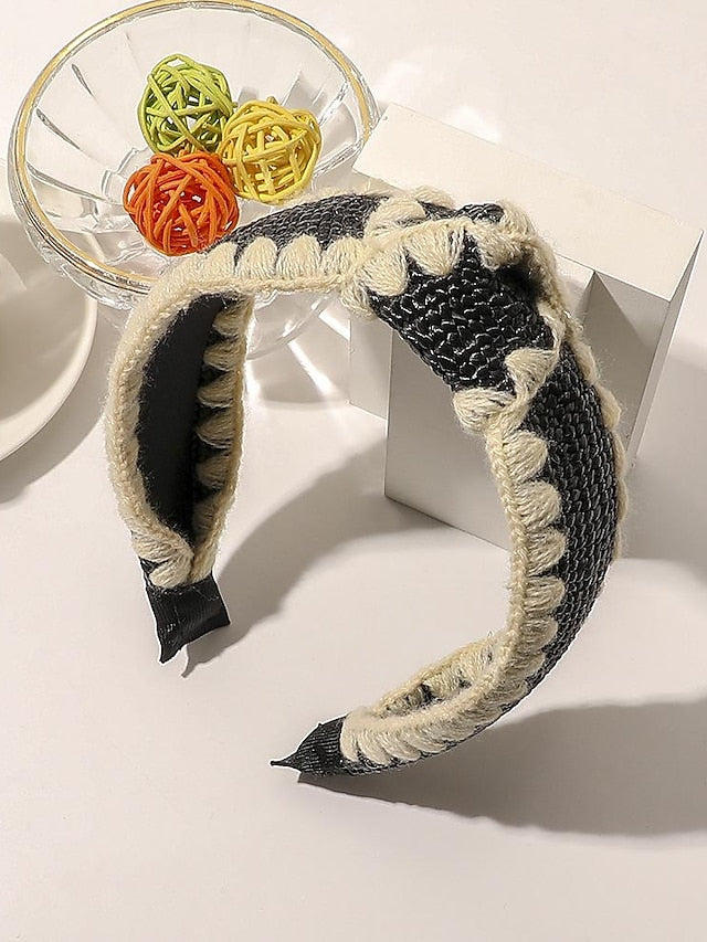 1PC Girls' Headbands Headband For Street Daily Holiday Weave Fabric Wool Edge Raffia Headband-Knotted Beige Wool Edge Raffia Headband - Flat Black Wool Edge Raffia Headband - Flat Beige for Women
