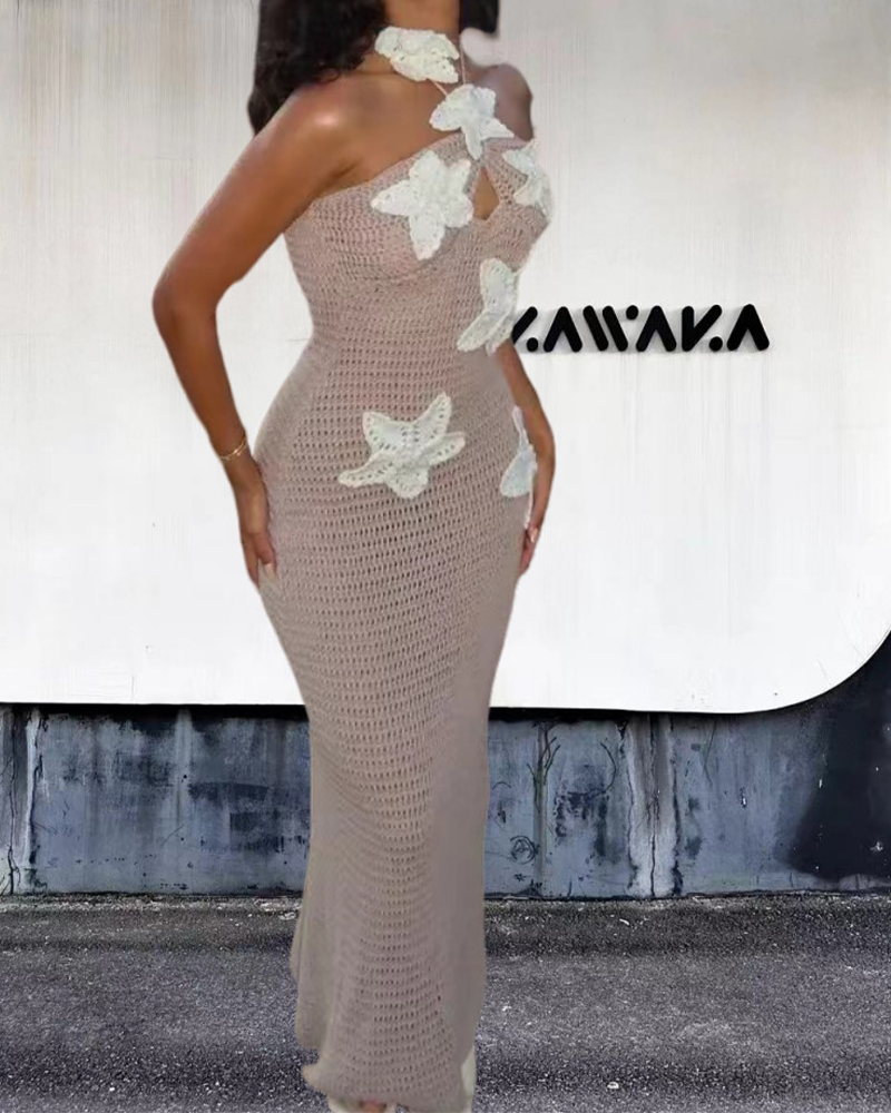 3D Flower Breasts Dressing Gown Slim Dress