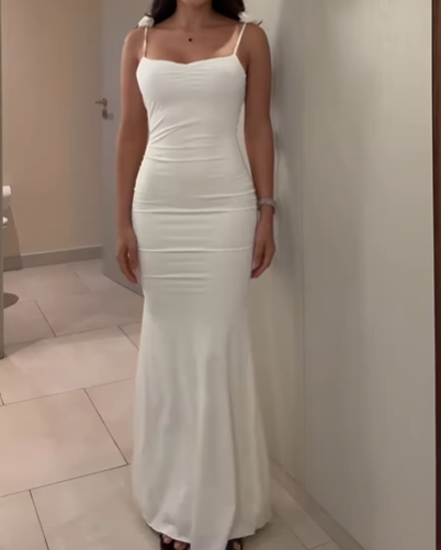 Backless Strap 3D Flower Decorated Suspender Evening Dress