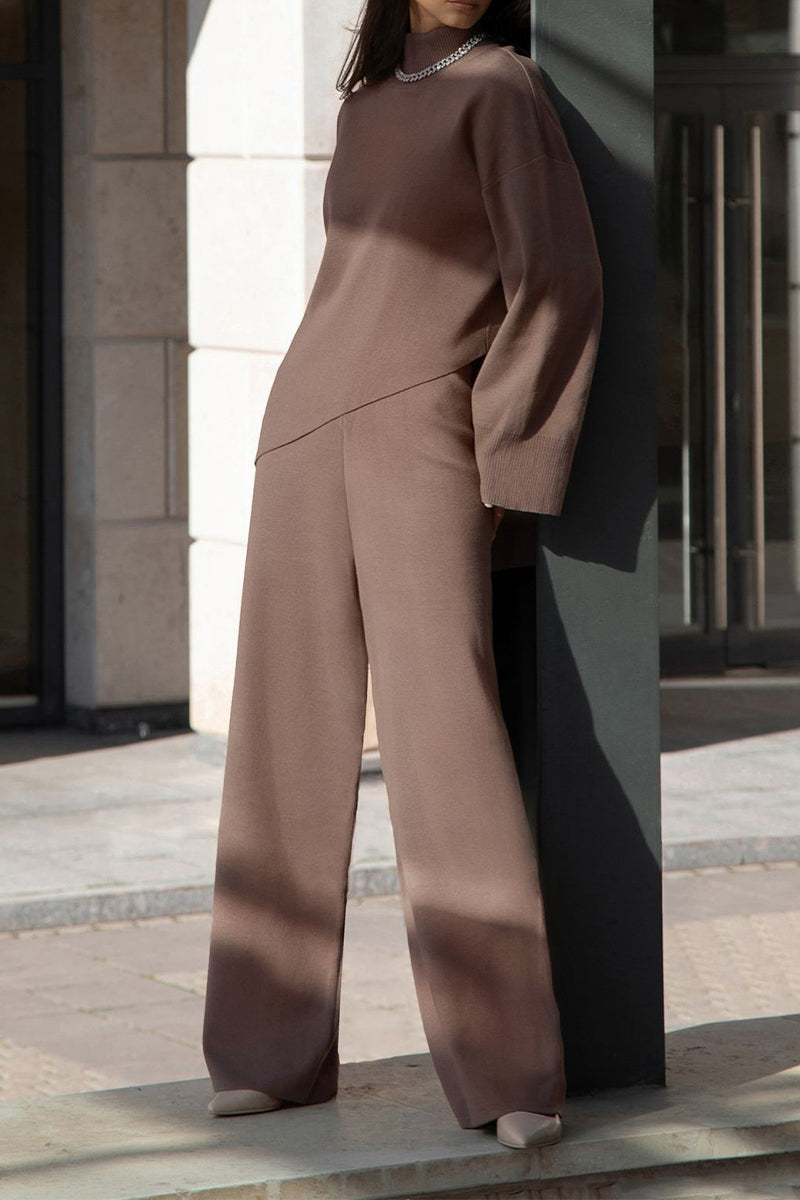 Casual Solid Asymmetrical Turtleneck Long Sleeve Two Pieces