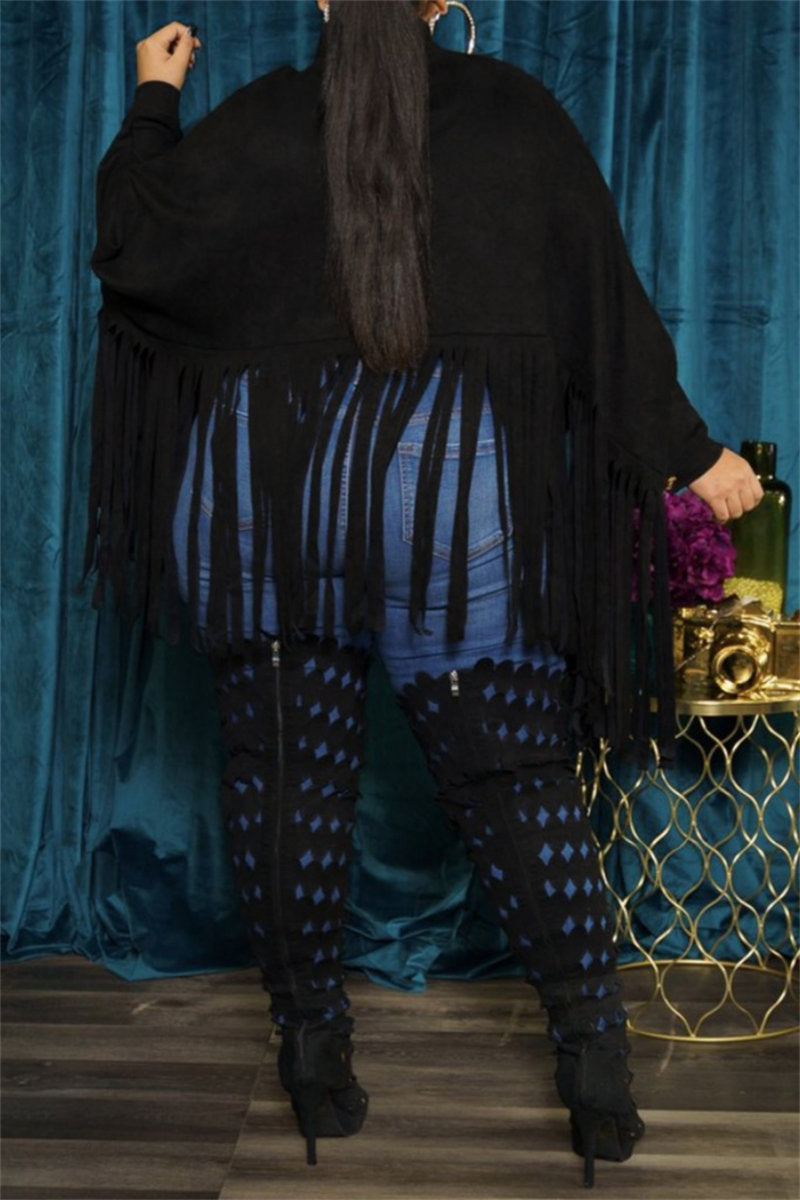 Casual Solid Color Fringed Trim Turtleneck Tops(6 Colors)