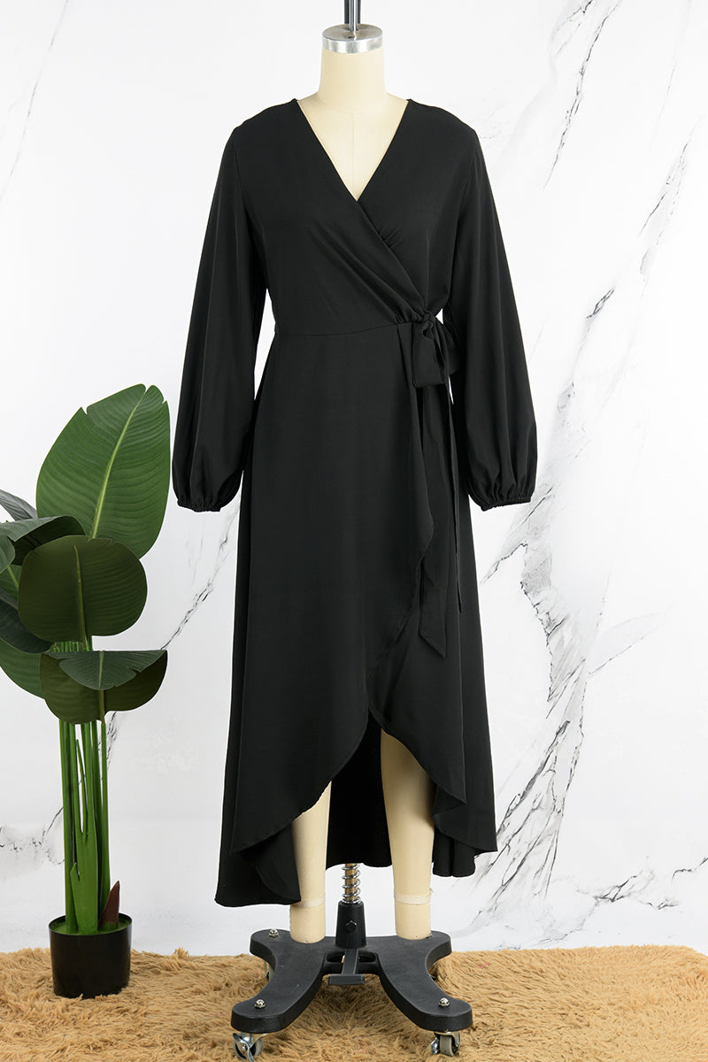 Casual Solid Frenulum Slit V Neck Long Sleeve Dresses(5 Colors)